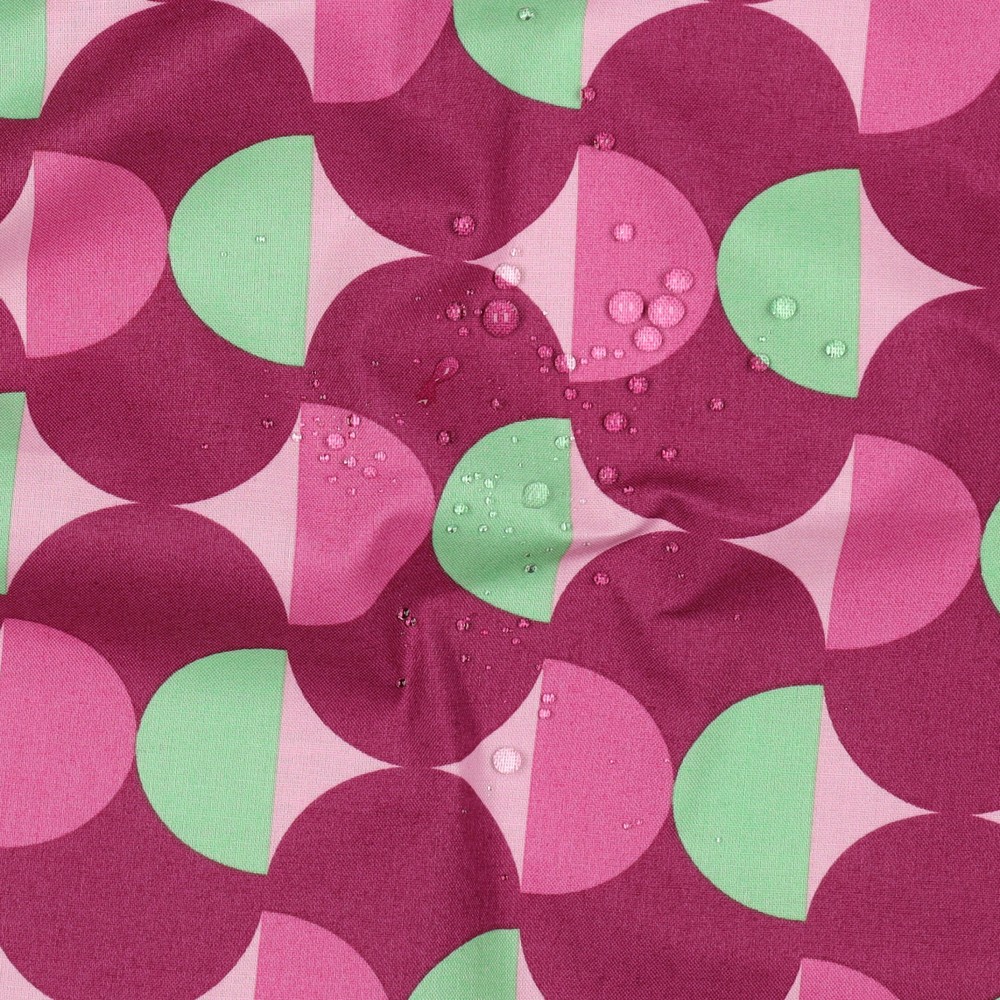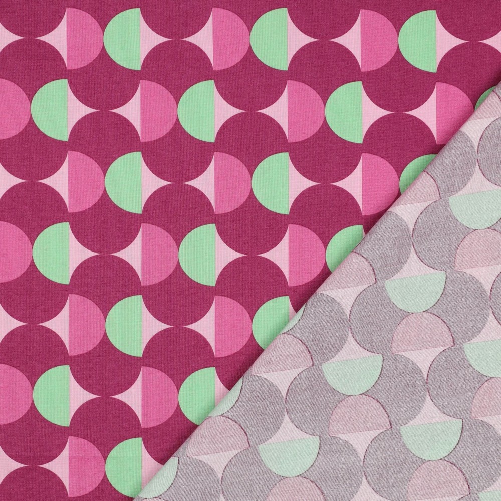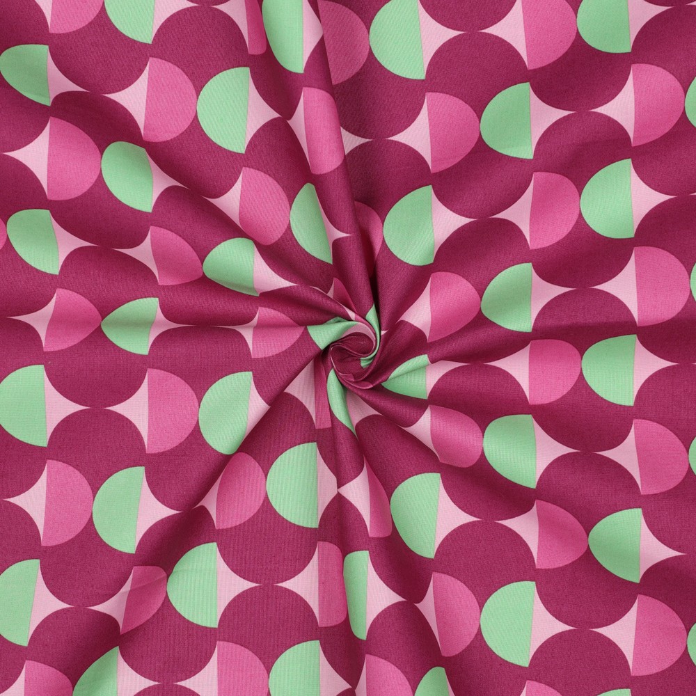 Dette belagte bomuld fascinerer med et stilfuldt, grafisk design i dyb Bordeaux-rød. Fine, lyse linjer danner et moderne, let geometrisk mønster, der giver stoffet et elegant og samtidig tidssvarende udtryk.