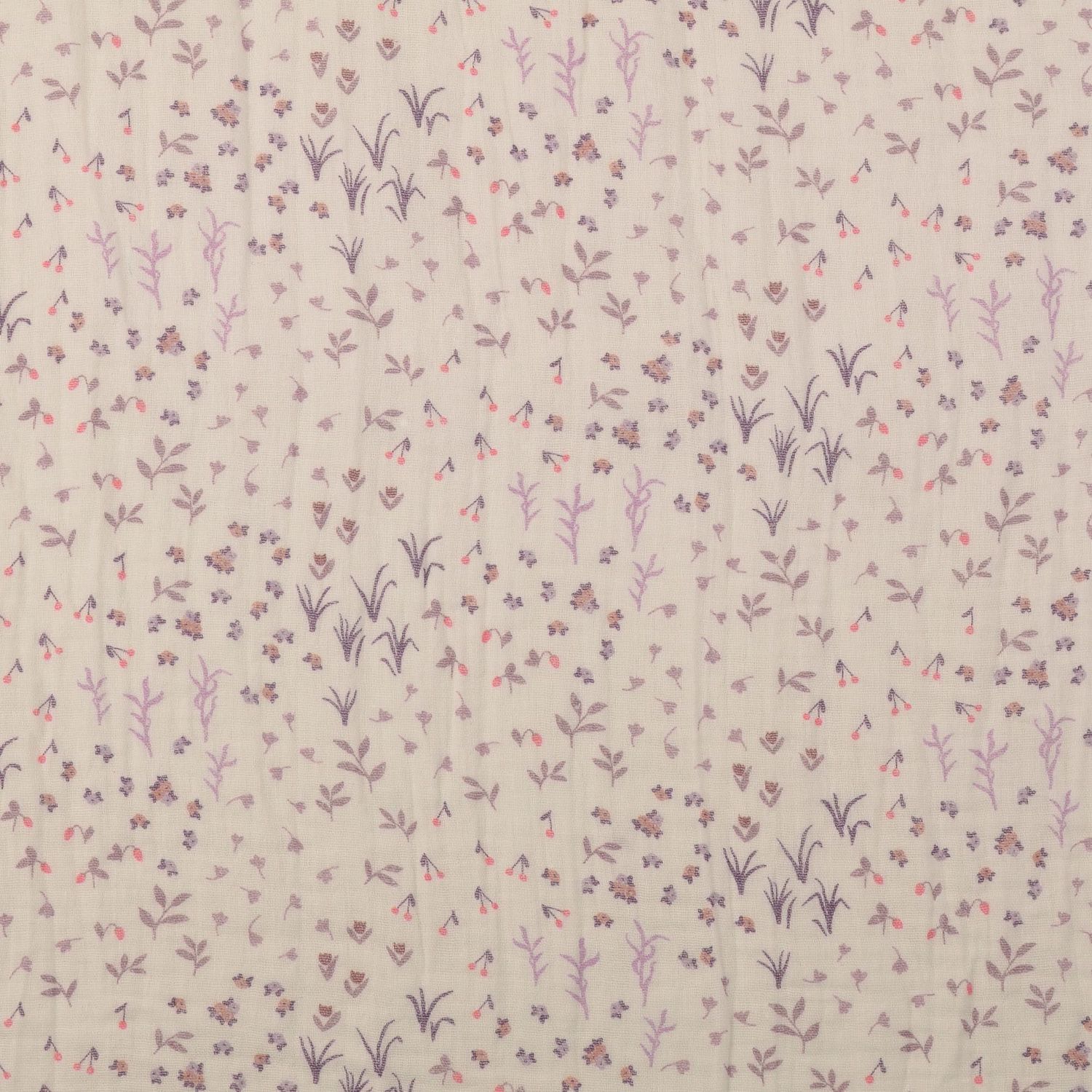 Bomulds-musselin - dobbel gaze digitaltryk botanisk uldhvid rosa