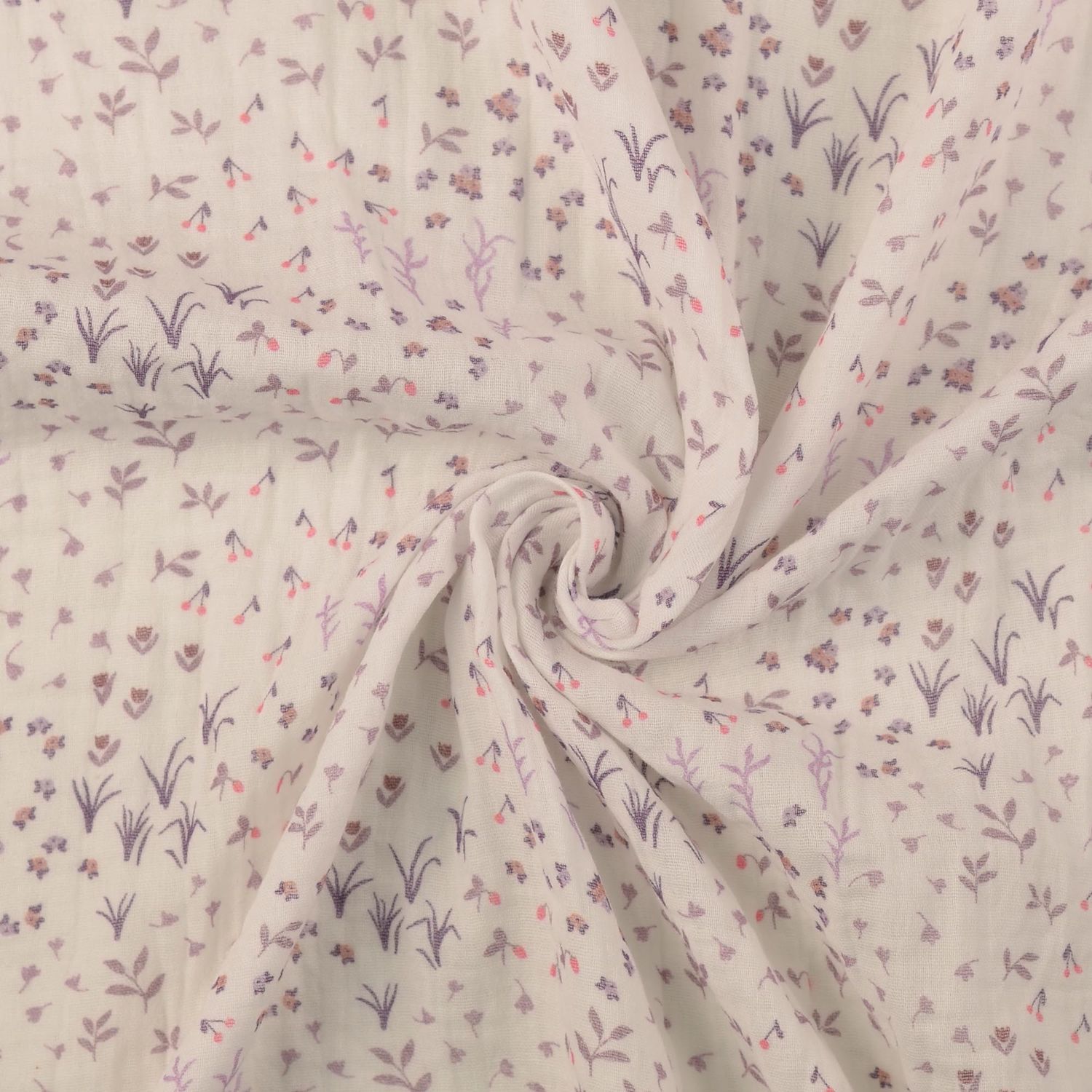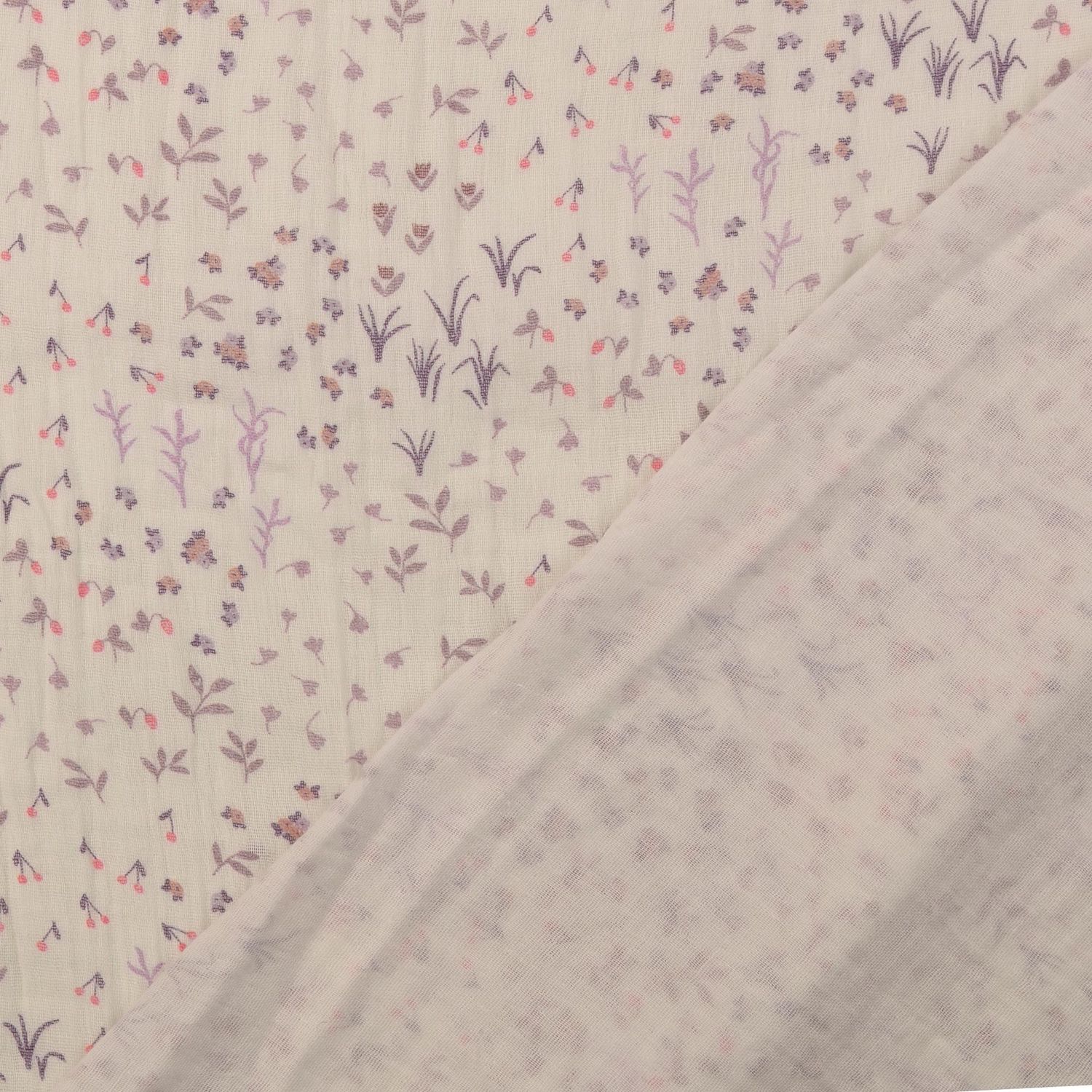 Den let krøllede musselinstruktur understreger den afslappede, luftige karakter og gør dette stof til den ideelle ledsager til luftigt let sommerbeklædning, tørklæder, babytæpper, accessories eller hyggelig hjemmedekoration.