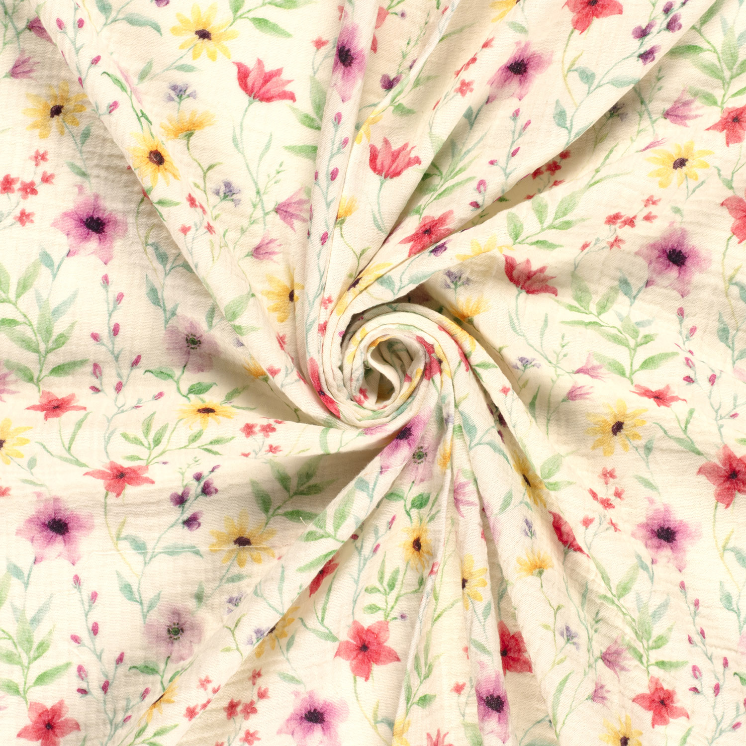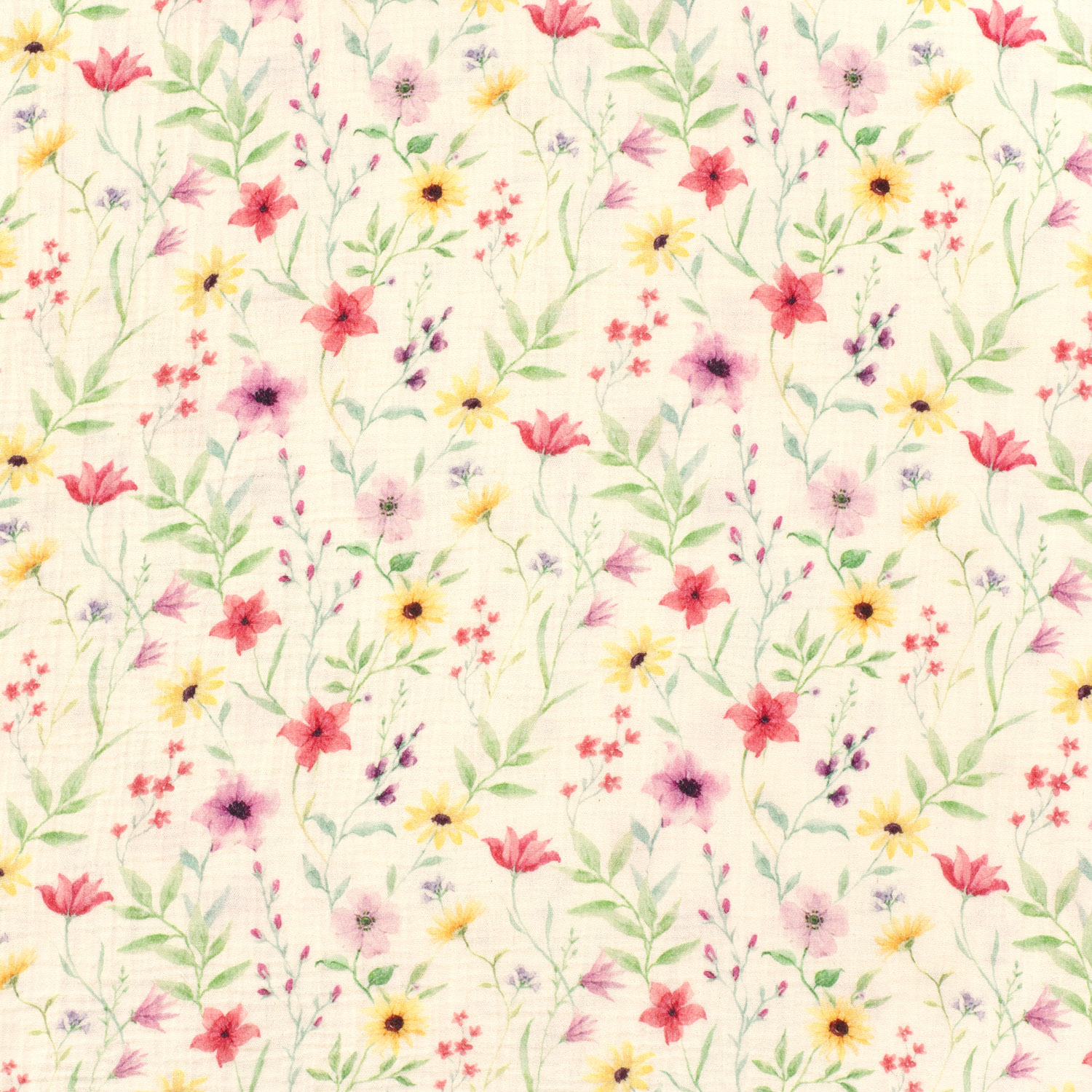 Bomulds Musselin - Double Gauze Digitaltryk Engblomster Natur