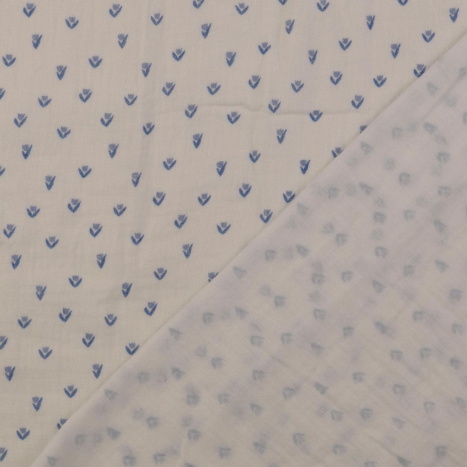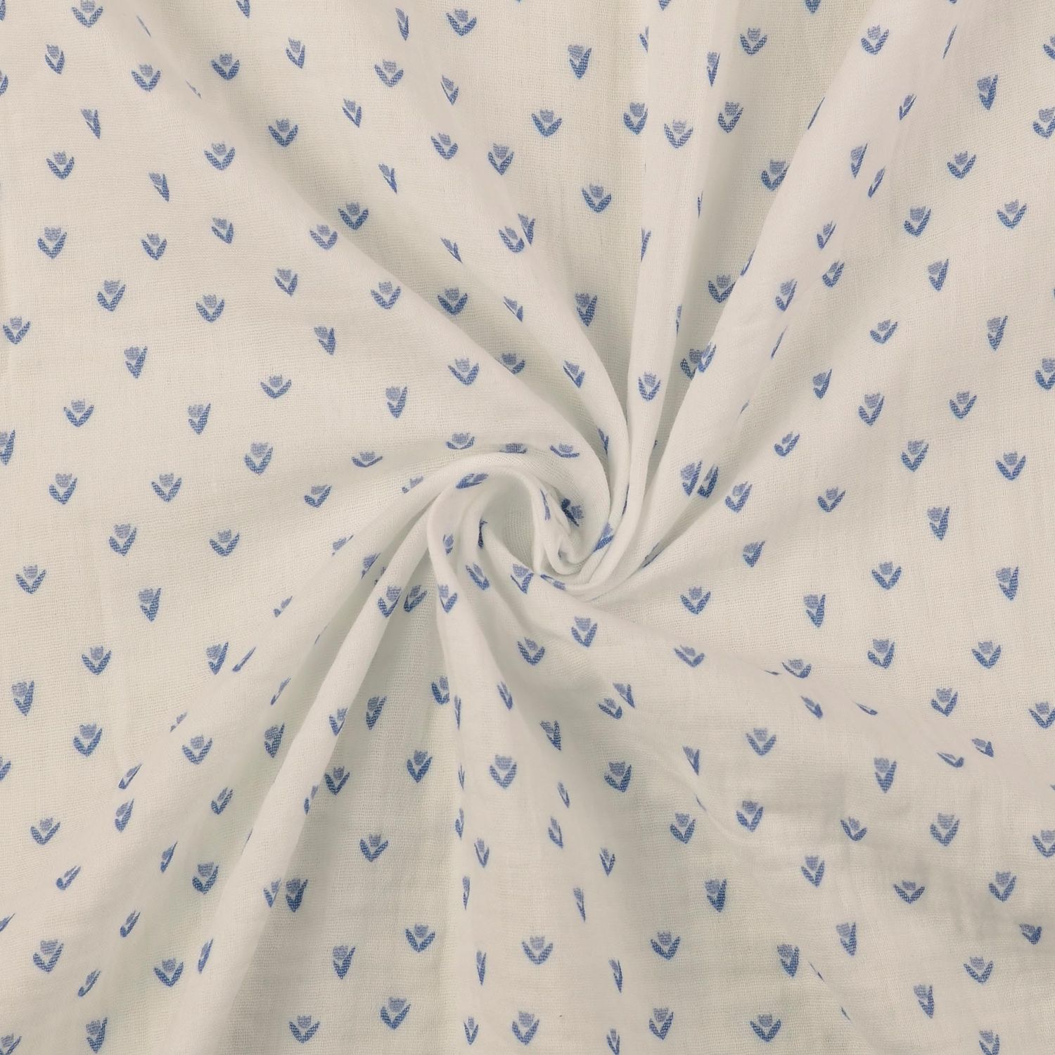 Bomulds-Musselin - Double Gauze digitaltryk Tulipaner Offwhite Denimblå
