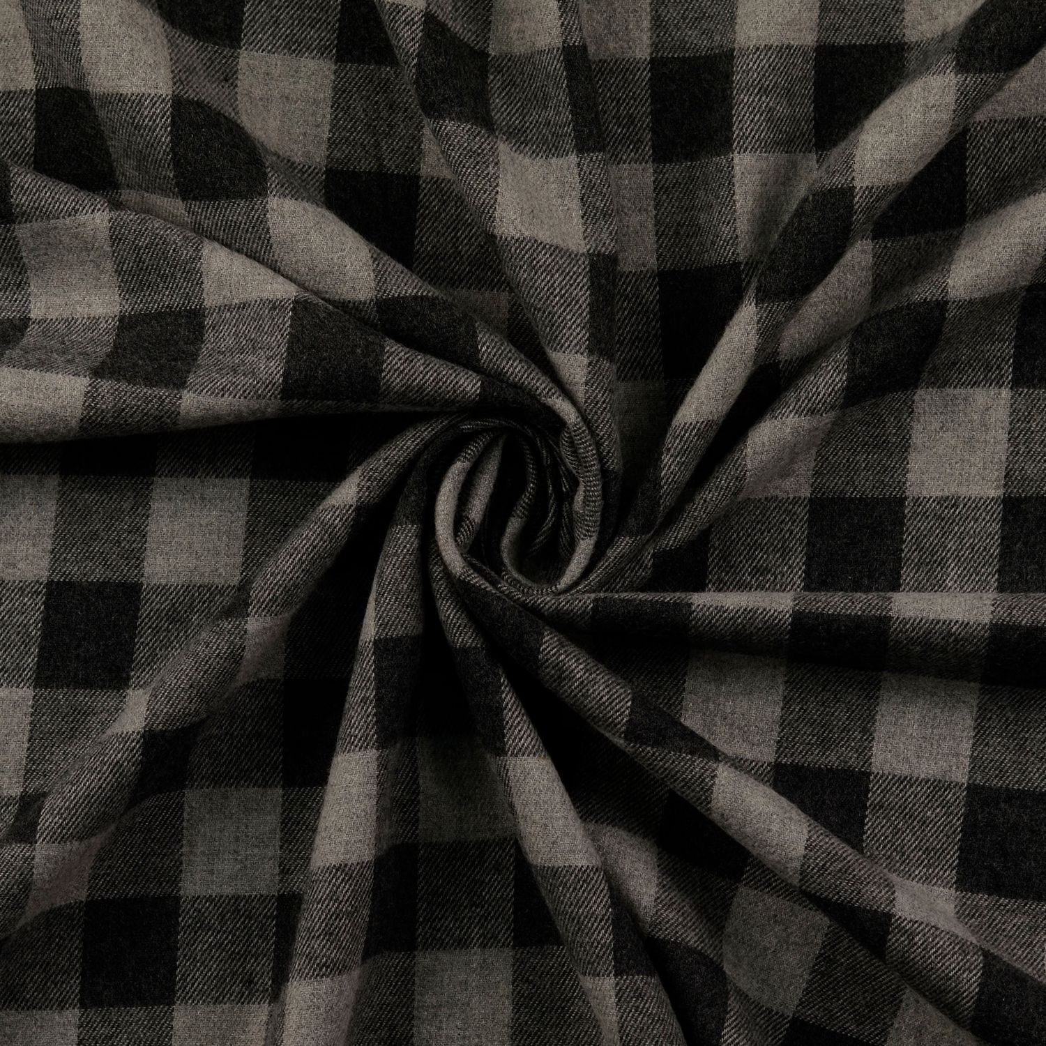 Dette bløde flannelstof præsenterer et klassisk stort ternet mønster i elegant lysegrå og dyb antracit. De harmonisk afstemte grå nuancer giver designet et tidløst og roligt udtryk – perfekt til dem, der ønsker at kombinere enkel elegance med hygge.