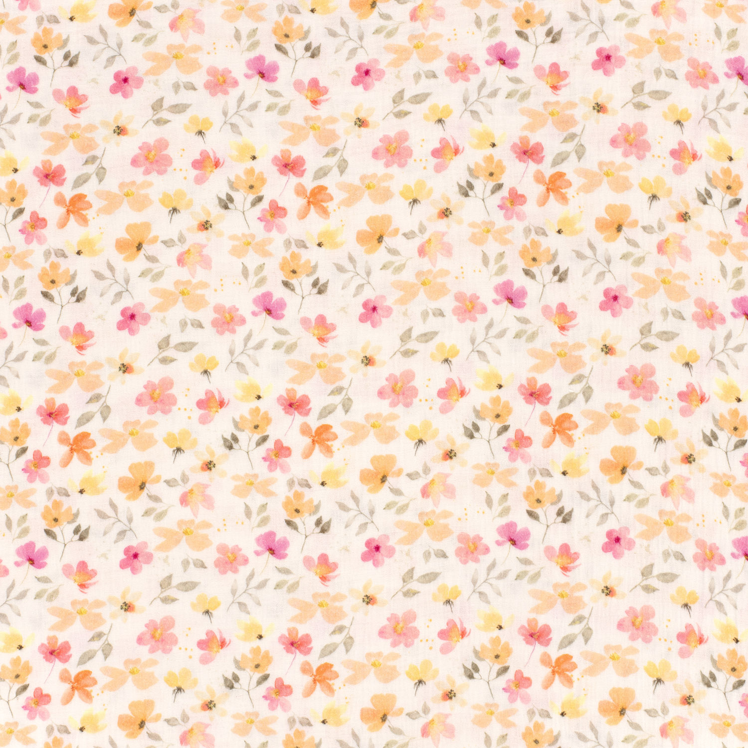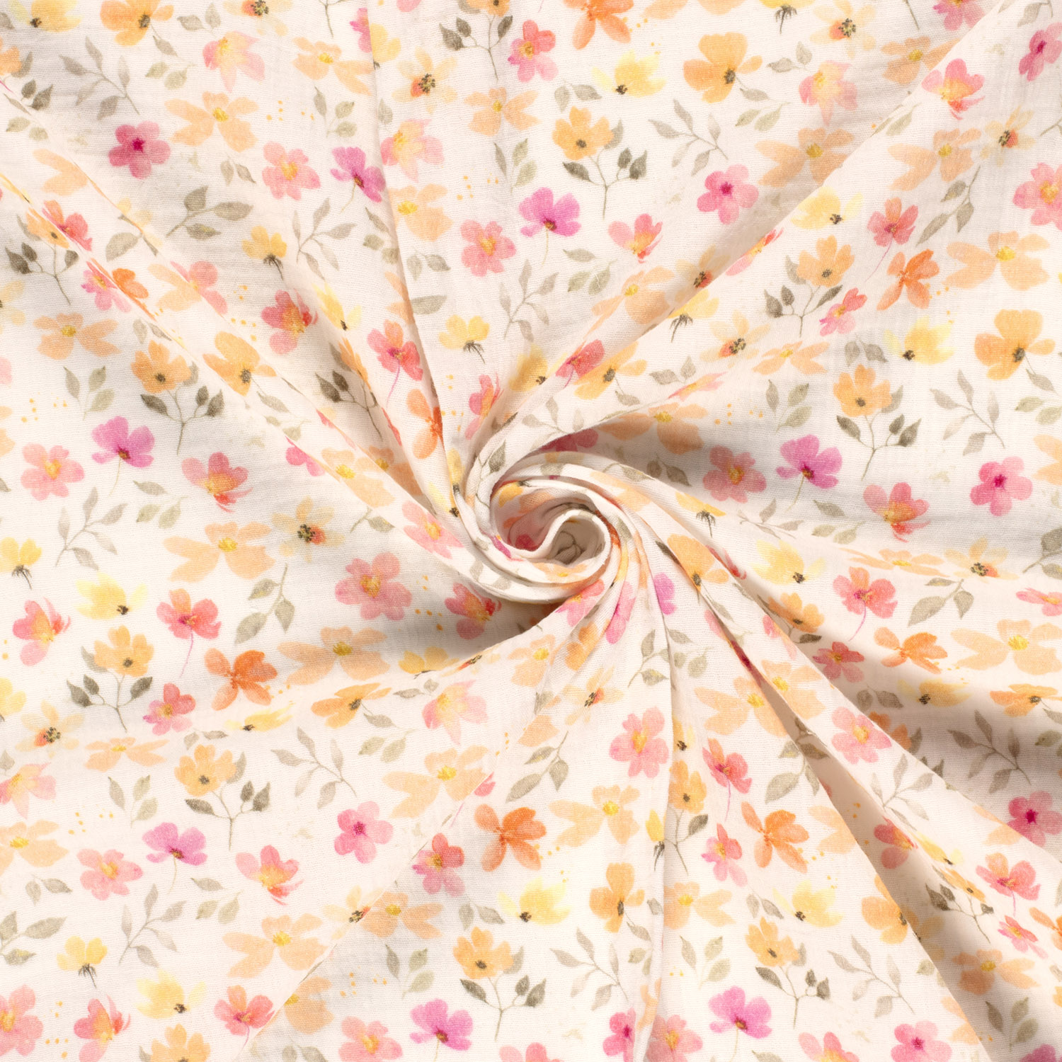 Bomuldsmusselin - Double Gauze digitaltryk blomster ecru