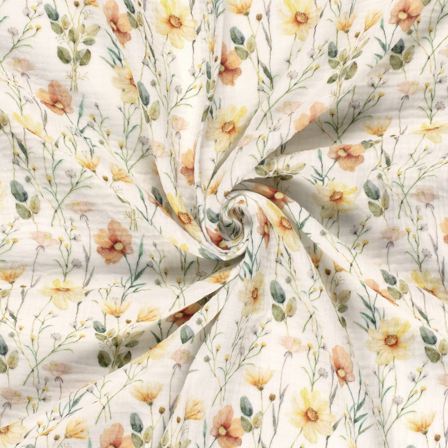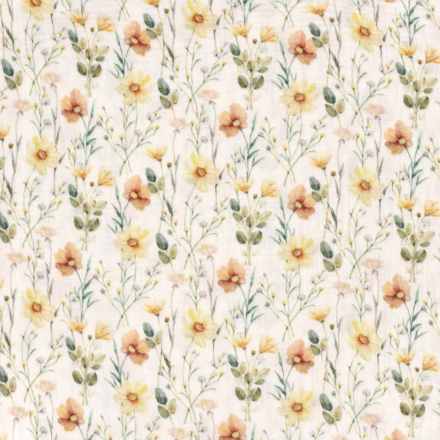 Bomuldsmusselin - Double Gauze digitaltryk blomster ecru