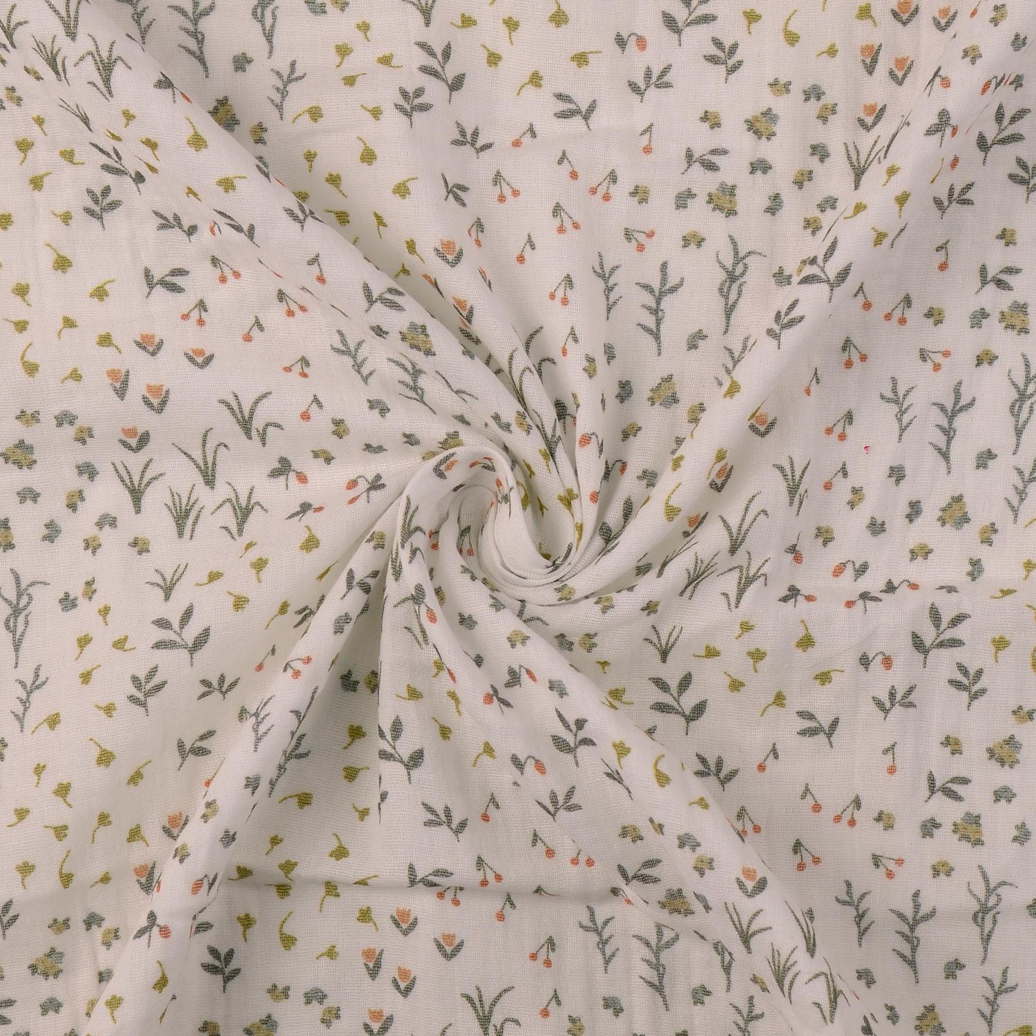 Bomuldsmusselin - Double Gauze digitaltryk botanik ecru orange