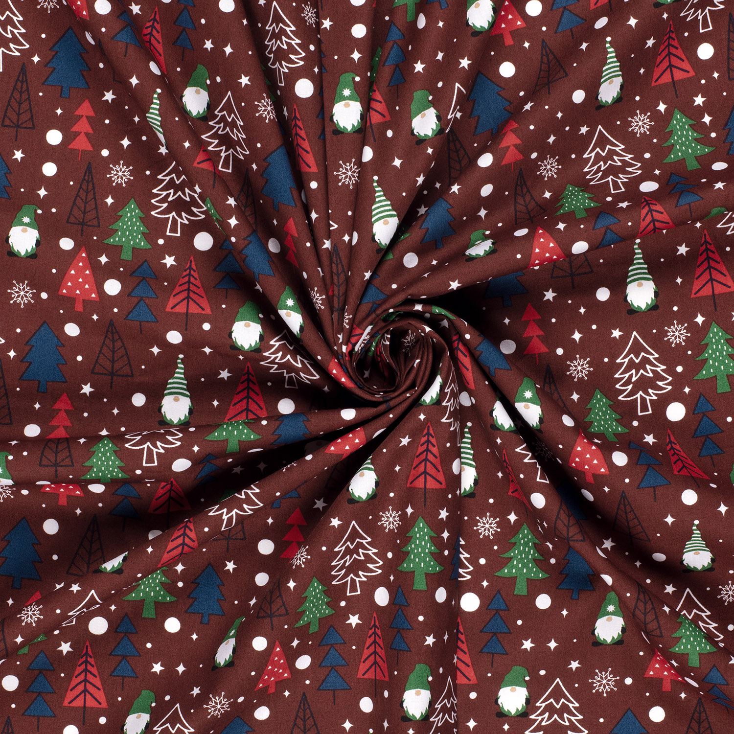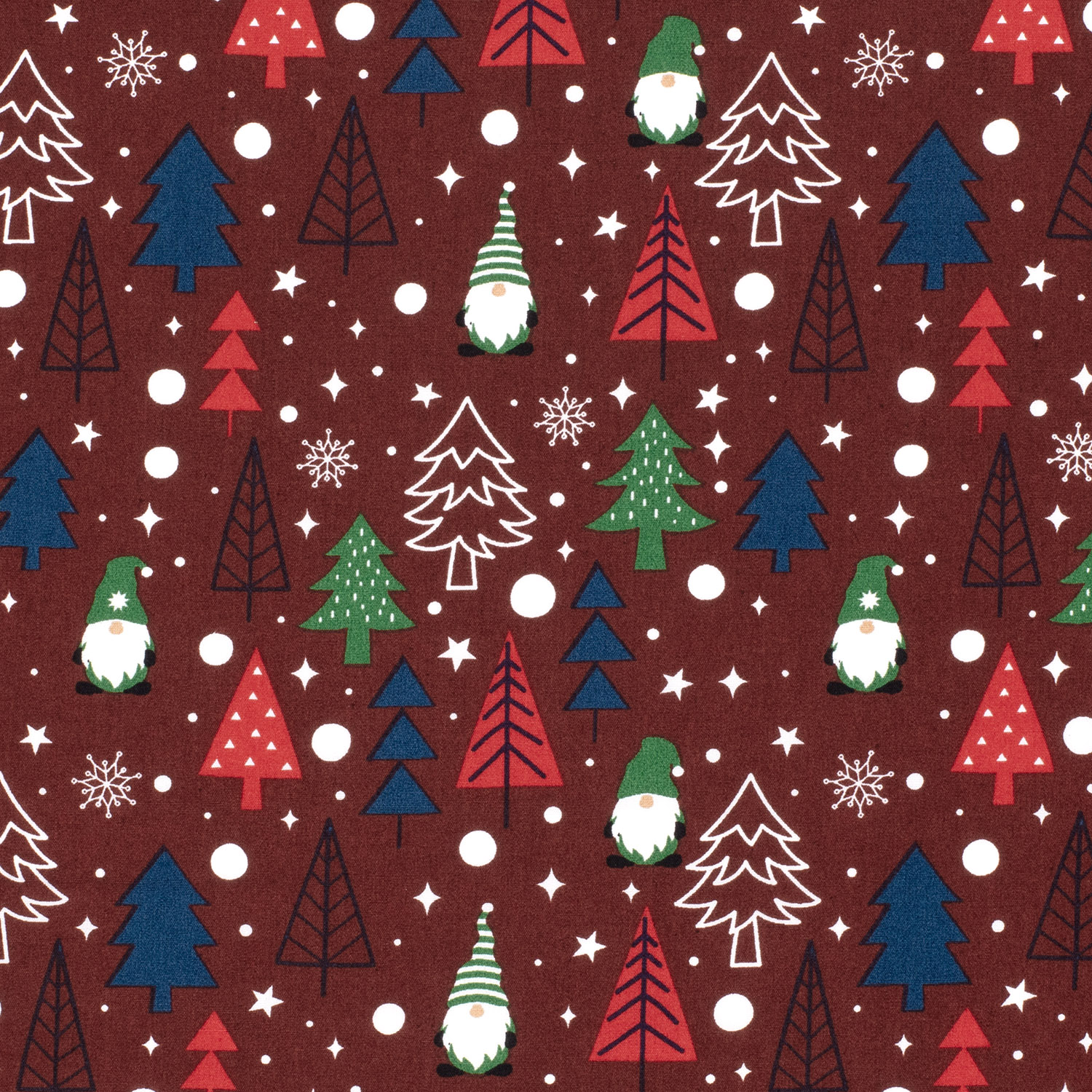 Et stof som taget ud af en fortryllet eventyrskov: små, muntre dværge boltrer sig blandt stiliserede træer, sarte blade og fine detaljer på en dyb bordeaux baggrund. De varme røde og brune toner suppleres harmonisk af friske grønne toner og lyse accenter, som giver designet et hyggeligt og let legende præg. Det kærligt illustrerede print er perfekt til børnetøj, hyggelige pyjamasser, skjorter, kjoler eller nederdele - men også til tilbehør som tasker, puder, patchworkprojekter eller dekorationer på børneværelset. Uanset om det er til små eventyrere eller eventyrfans: Dette stof bringer fantasi, farver og en smule dværgmagi til ethvert syprojekt.