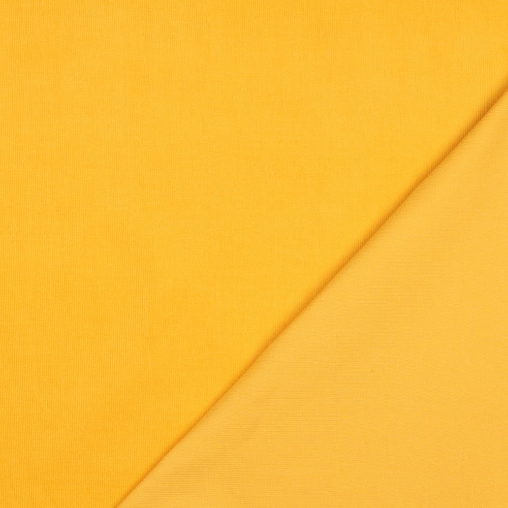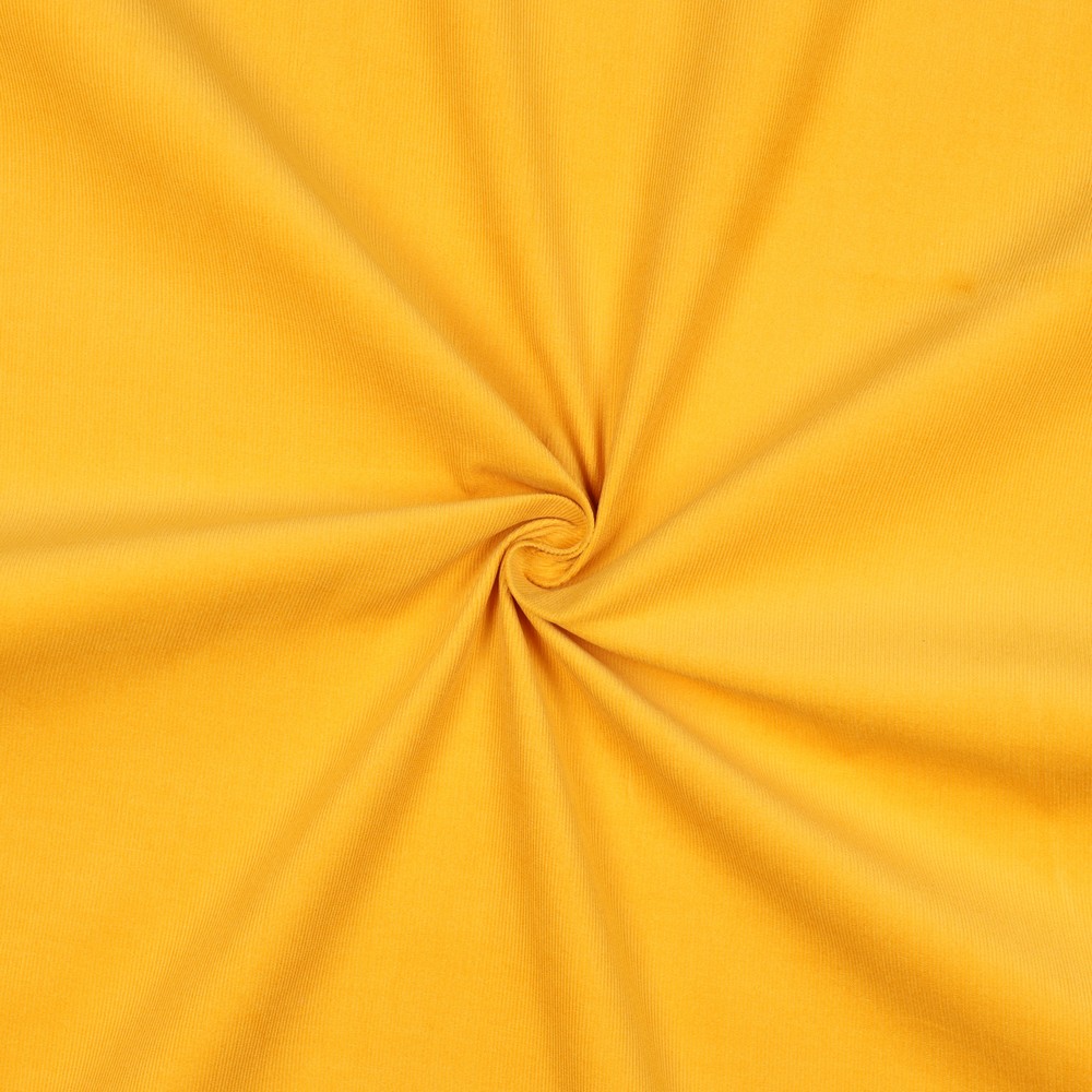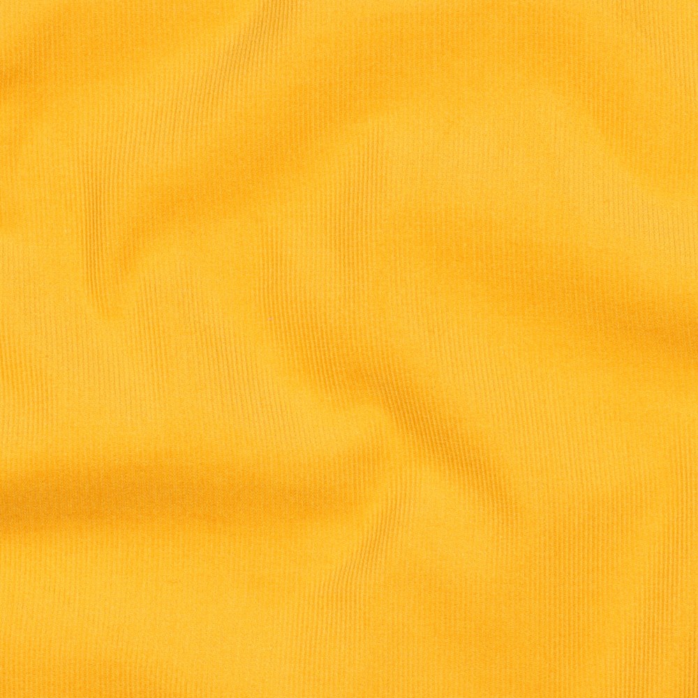 Denne finfløjl i varm sennepsgul bringer straks godt humør til ethvert syprojekt. Den fine, bløde rillestruktur fanger lyset smukt og giver stoffet en eksklusiv, blød overflade, som man helst vil røre ved hele tiden.