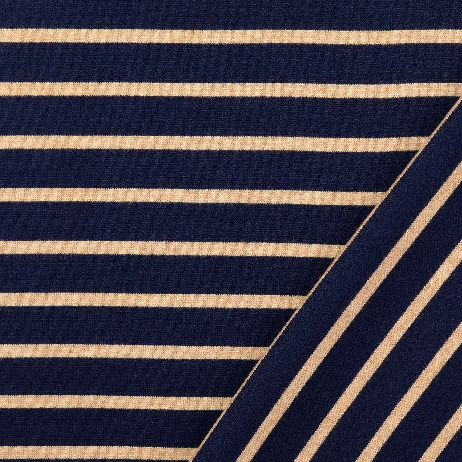 Jacquard strikjersey - striber navy beige