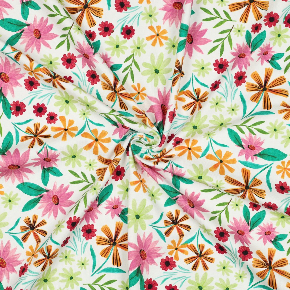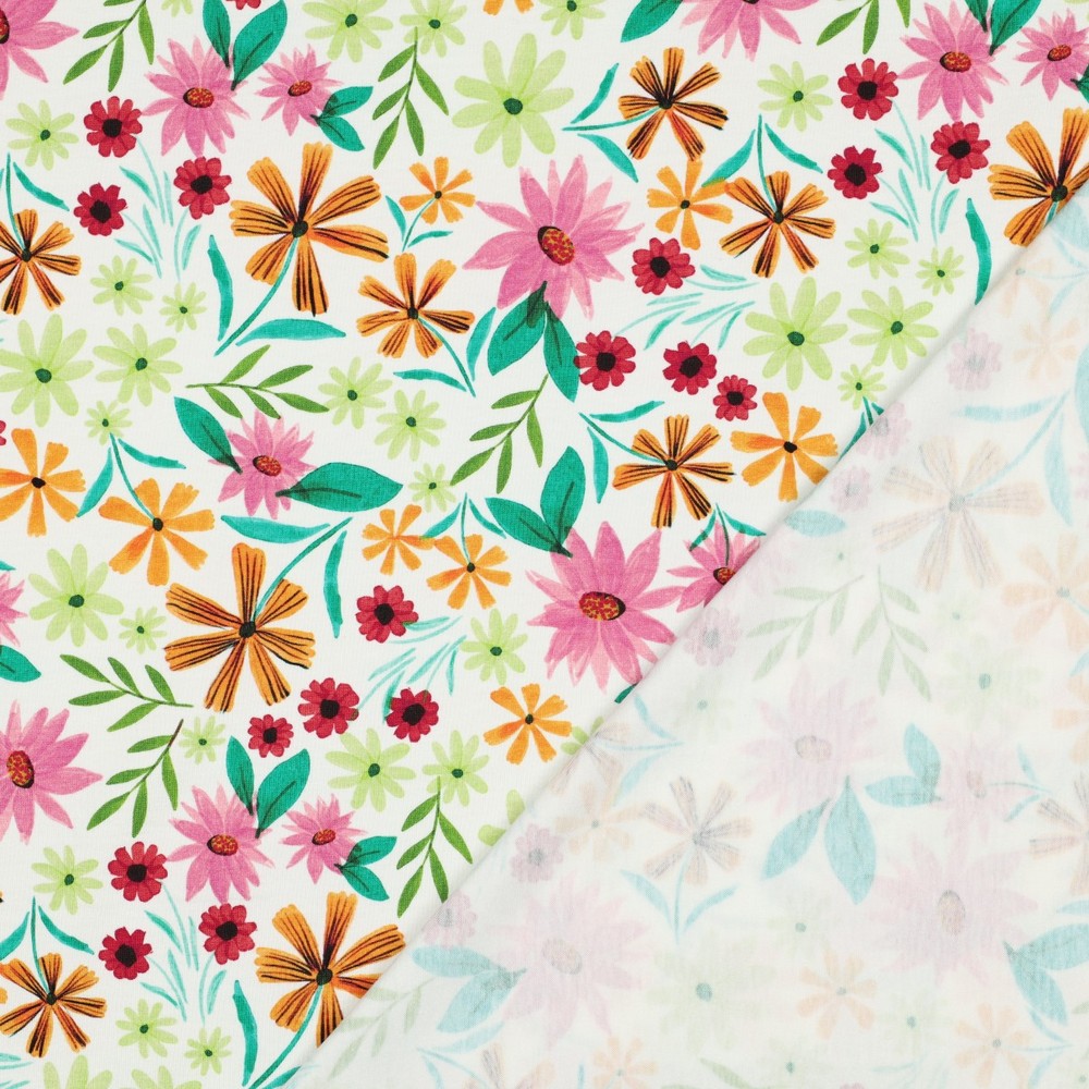 Jersey - Digitaltryk Blomster Hvid