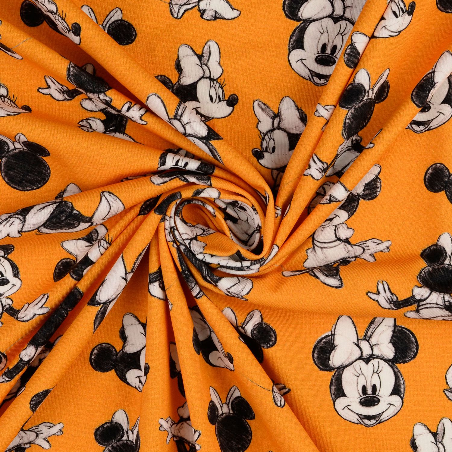 Denne glade jersey bringer ren Disney-magisk stemning til dit syværelse: På en klart orange baggrund tumler en kendt musefigur rundt i stilfulde skitser – nogle gange grinende, andre gange drømmende eller fræk. Tegningerne ser ud, som om de er skitseret med en sort pen og suppleres harmonisk med sarte accenter i hvidt og rødt. Det skaber et moderne, let retro-inspireret look, der både er legende og stilfuldt.