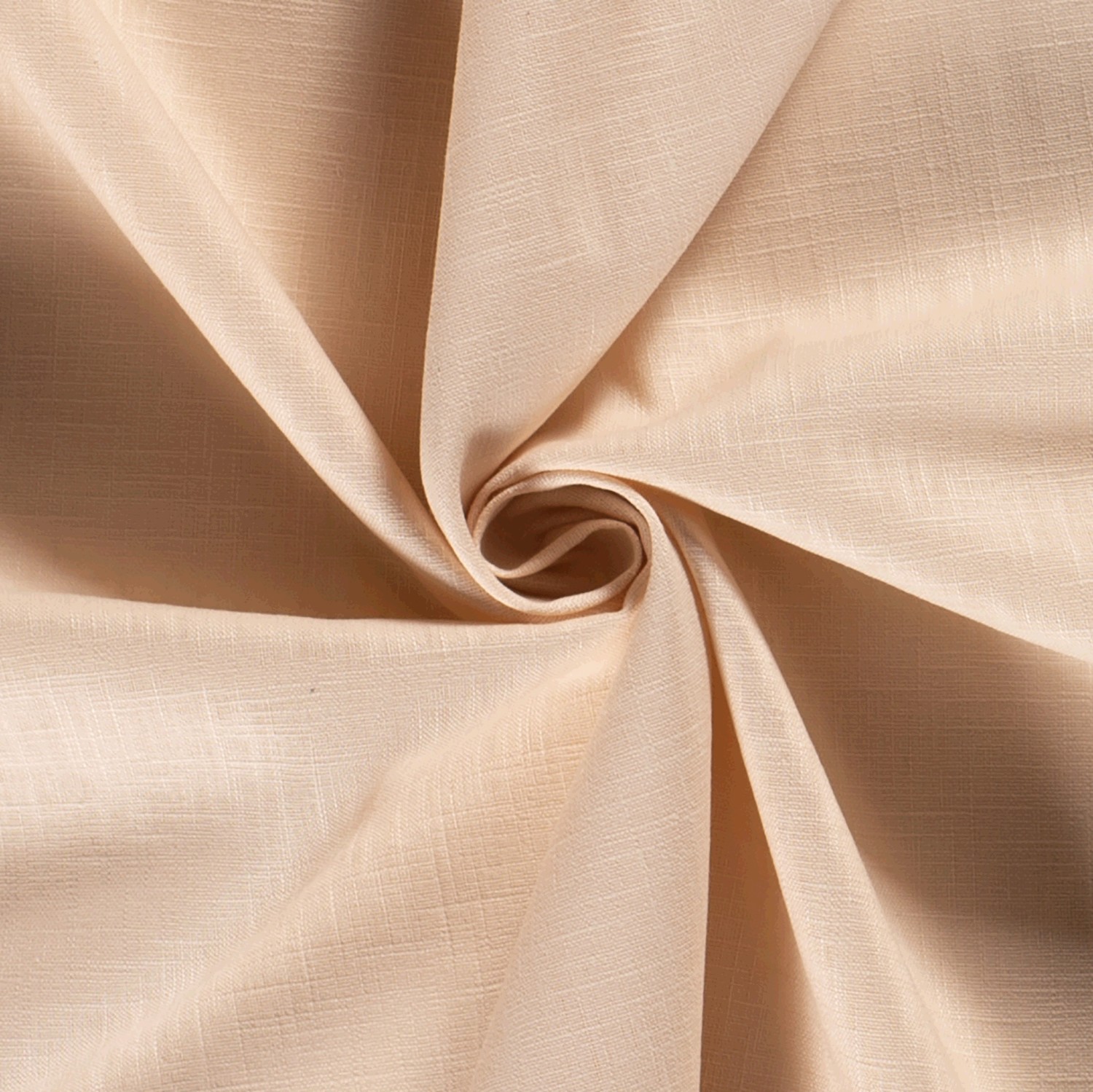 Dette højkvalitets linnedstof i en delikat hudfarve fremstår elegant, naturligt og tidløst. Den fine ensfarvede farvning fremhæver den typiske linnedstruktur med dens diskret levende uregelmæssigheder – præcis det, der gør ægte linned så karakterfuldt.