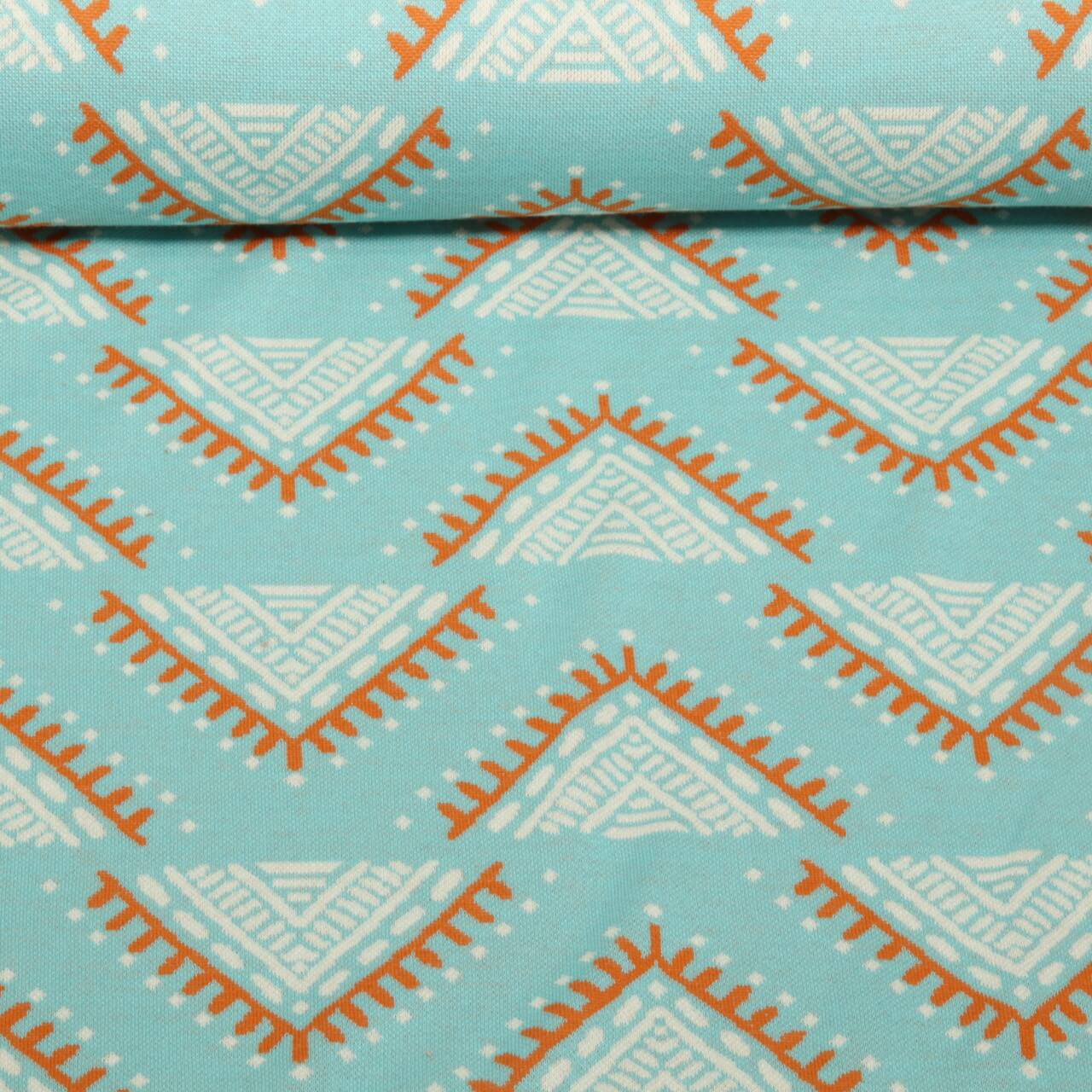 Økologisk Jacquard Jersey - Hamburger Liebe Western Fairy Tales Camp Site Turquoise