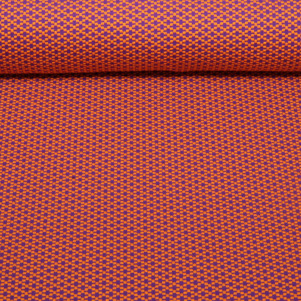 Denne jacquardjersey fortryller med sit moderne strikkede look i bløde lilla toner. Designet minder om et afslappet, chunky strikmønster, hvor mørkelilla, mauve og sarte lilla nuancer er dygtigt vævet sammen. Resultatet er et livligt, men roligt look, der passer perfekt til dine yndlingstøjstykker. Uanset om det er en stilfuld jakke, cardigan, jumper, kjole eller et hyggeligt sæt - dette stof vil øjeblikkeligt bringe en god stemning ind i din garderobe. Den fine jacquardstruktur giver dine syprojekter en struktureret overflade af høj kvalitet, der ligner et strikket stof, men som er behageligt blødt og hyggeligt at have på. Dette stemningsfulde strikdesign i lilla er et statement mellem afslappet, moderne og feminin. Ideelt til alle, der kan lide komfort uden at gå på kompromis med et særligt look.