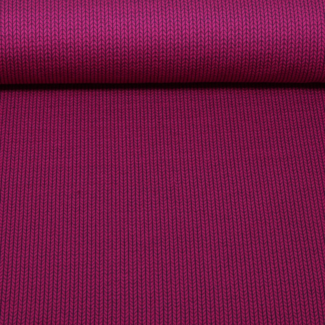 En strikket drøm i bærtoner: Denne elegante jacquard fra Albstoffe fortryller med sit moderne "Knit Knit"-design. Fine, grafiske stingstrukturer løber på tværs af stoffet og skaber et livligt, strikket look - uden at være for påtrængende.