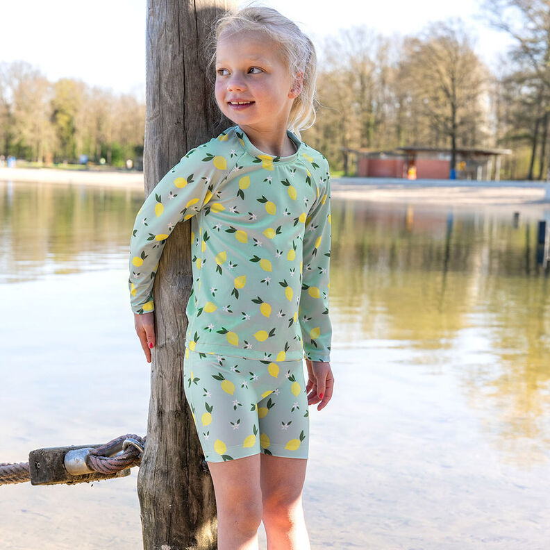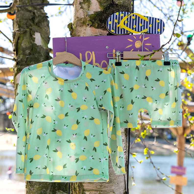 Badetøjsstof UPF50 citroner – lys mint/Citrongul