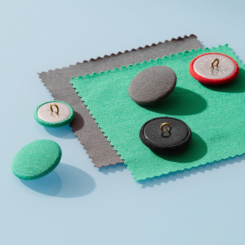 Betrukket knap, Viskosejersey medium – sort