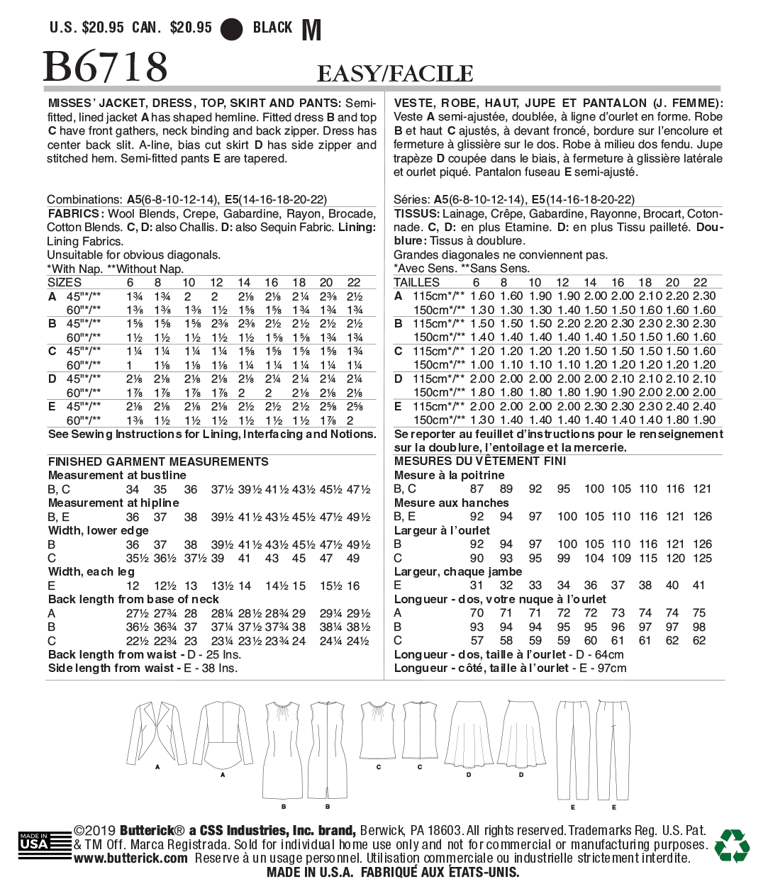 Blazer/Top/Bukser/Kjole /Nederdel , Butterick 6718 | 40-48