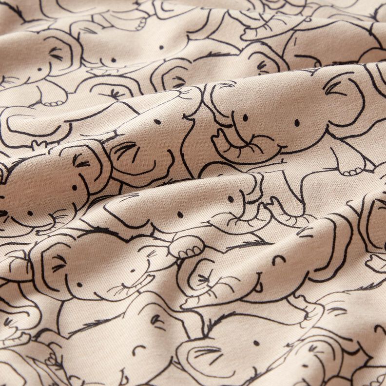 Denne skønne bomuldsjersey med det dejligste børnetryk føles glat og behageligt. De er en bekvem ledsager, da den er bi-elastisk og hudvenlig - så dine små kan føle sig super godt tilpas.