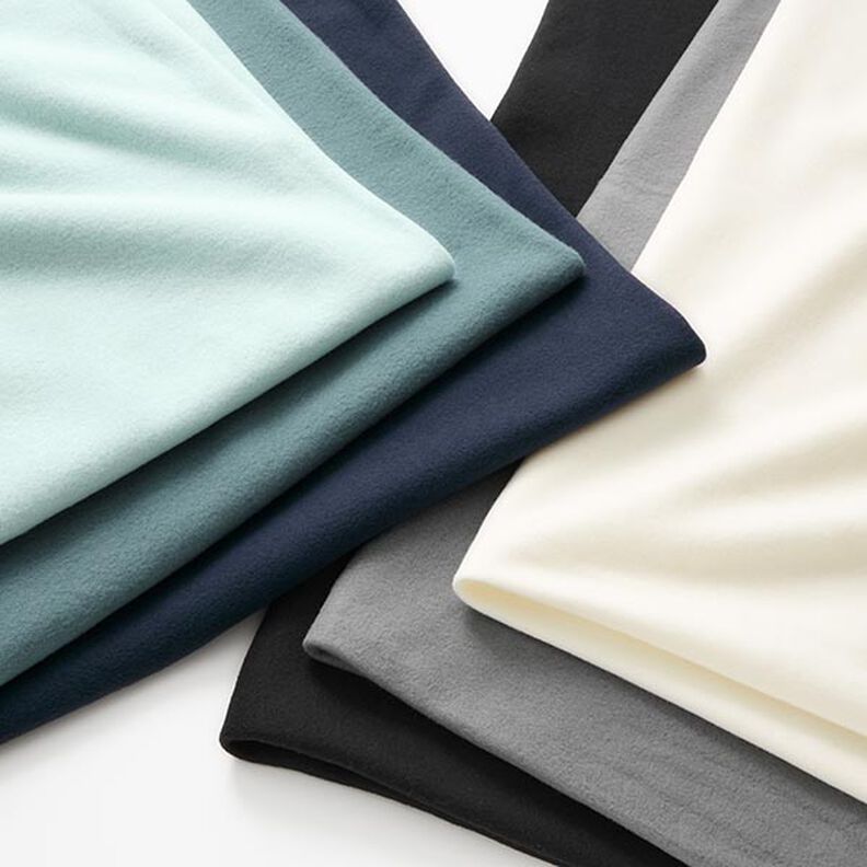 Denne meget eksklusive bomuldsfleece er med sin børstede, lodne bagside meget blød og lækker og kan takket være sin specielle udførelse holde dig dejligt varm. Samtidig er den elastisk og er derfor virkelig behagelig at have på.