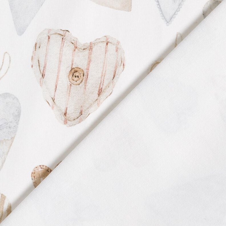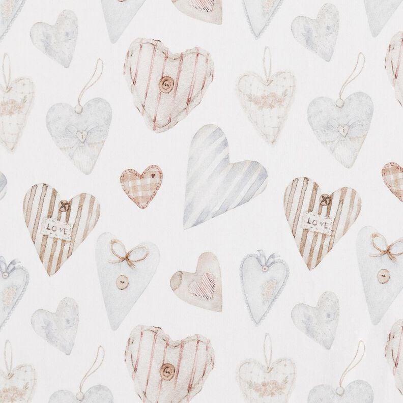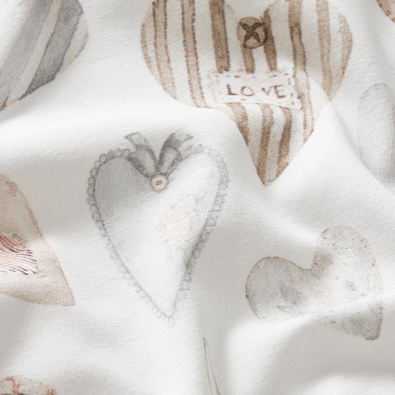 Bomuldsjersey akvarel hjerter Digitaltryk – elfenben/blågrå