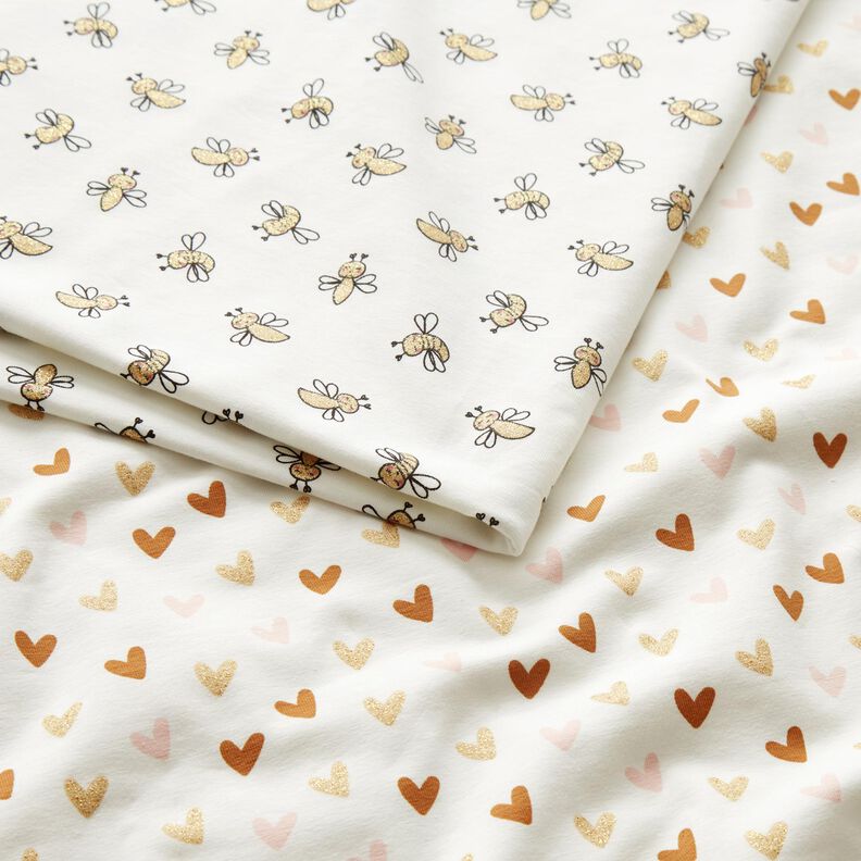 Bomuldsjersey Glitter-små hjerter – elfenben