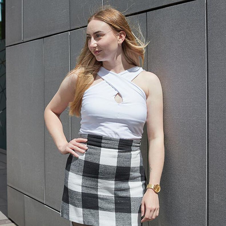- BI-ELASTISK: Elastan-andelen i stoffet gør det helt specielt strækbart, så man kan strække det i alle retninger, uden at det mister faconen. Bi-elastiske stoffer er særligt behagelige, da de tilpasser sig enhver kropsform.