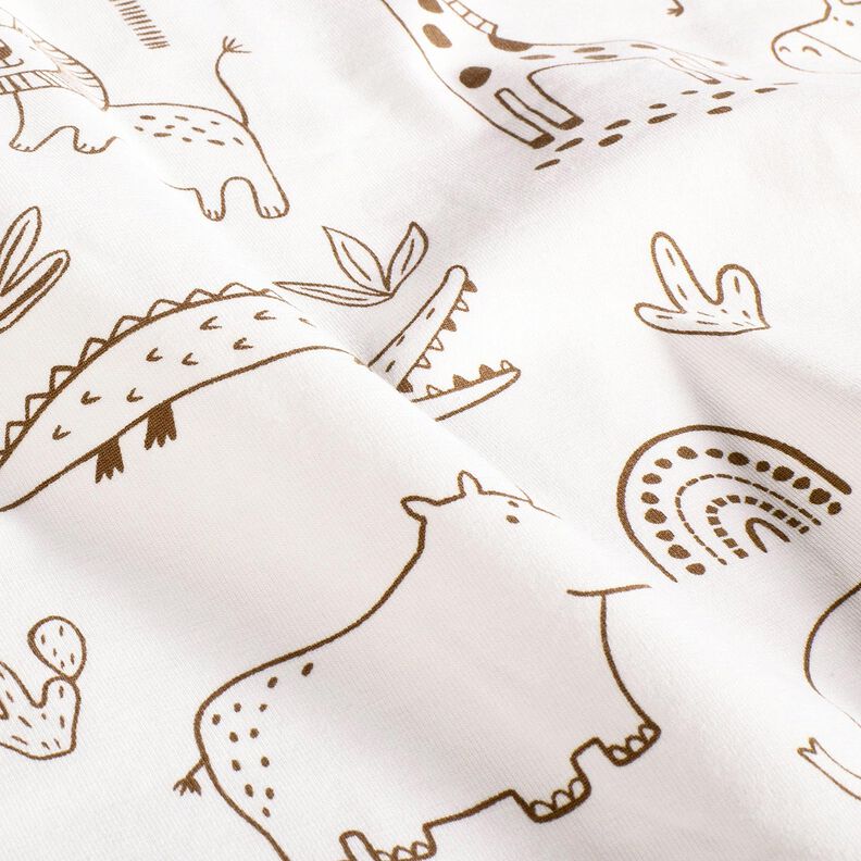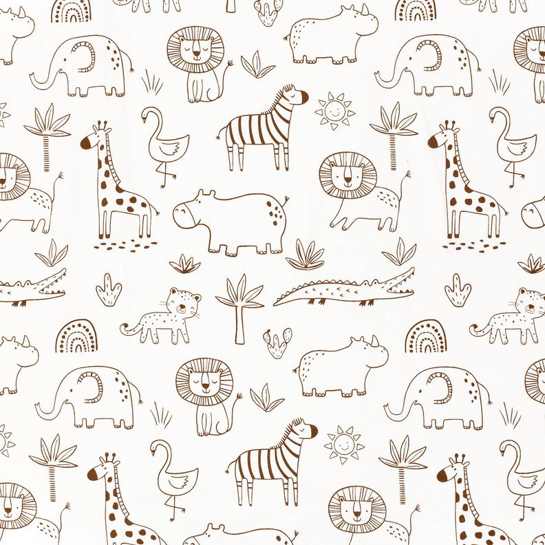 Bomuldsjersey tegnede jungledyr – elfenben/chokolade