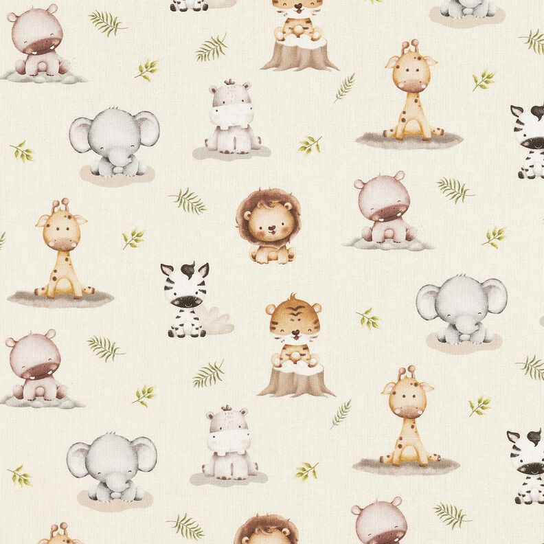 Bomuldspoplin Baby-jungledyr Digitaltryk – beige