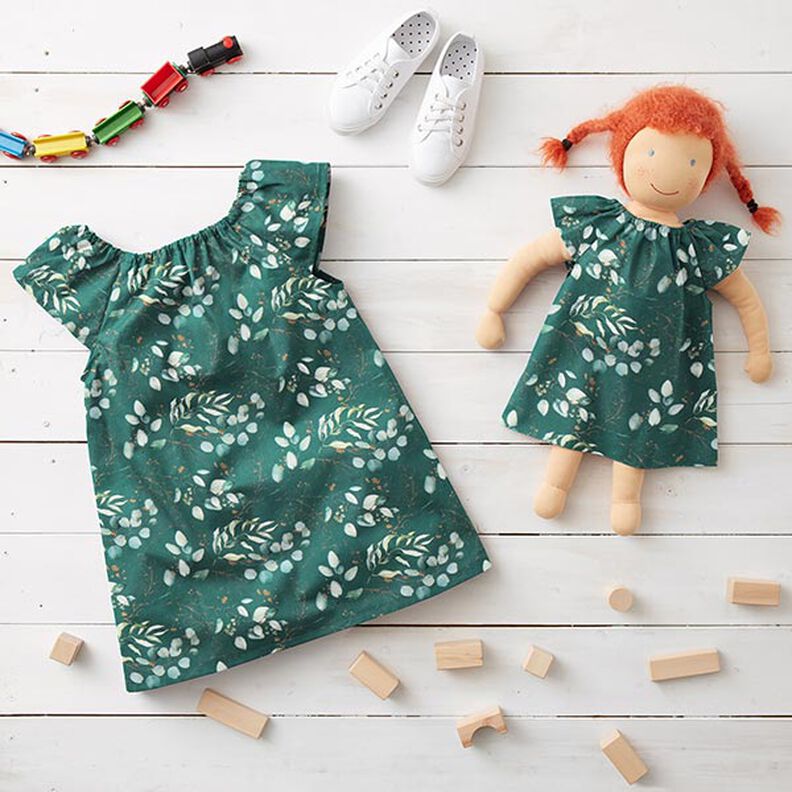 Bomuldspoplin Digitaltryk eukalyptus – petrol