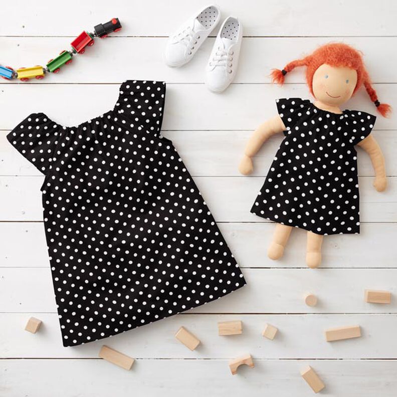 Bomuldspoplin store prikker – sort/hvid