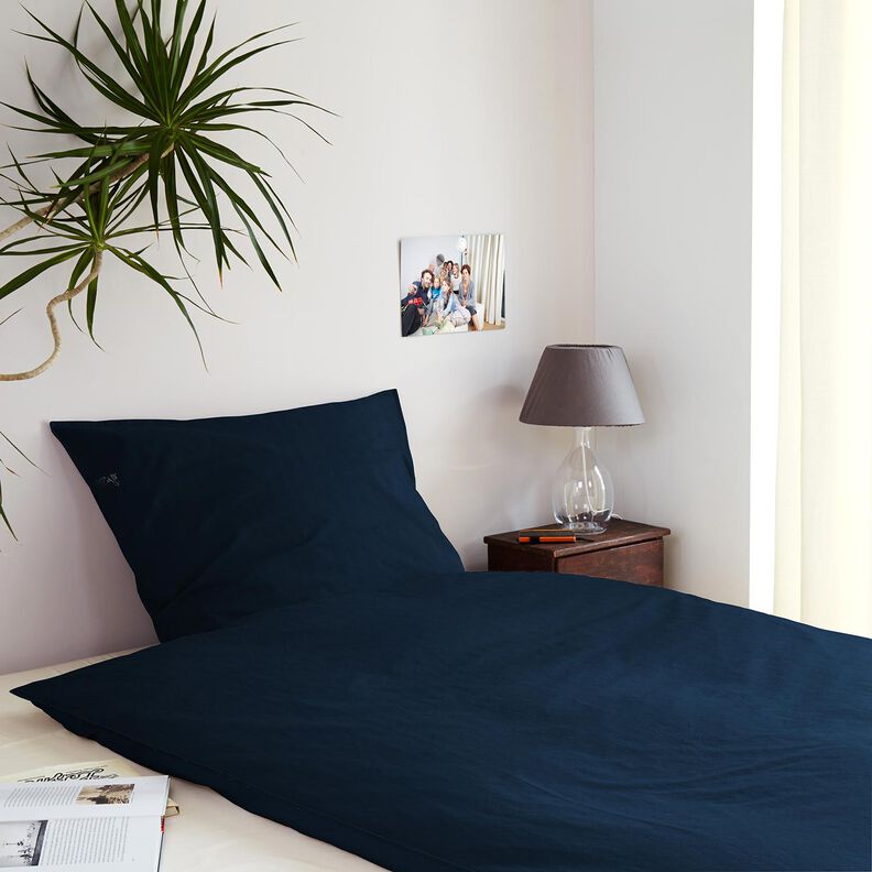 Bomuldssatin Ensfarvet – sort-blå