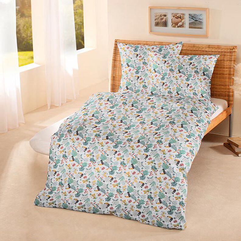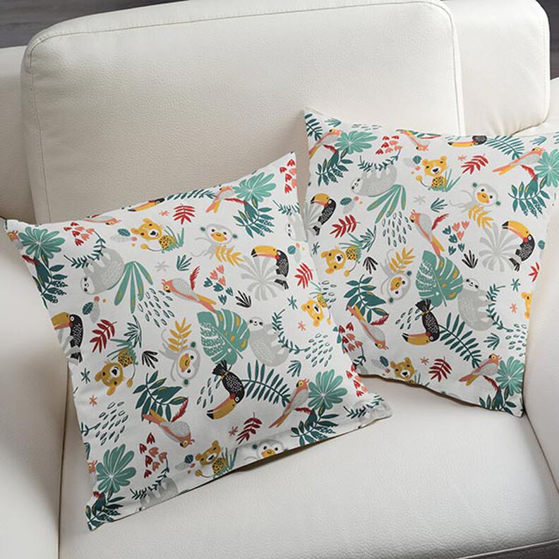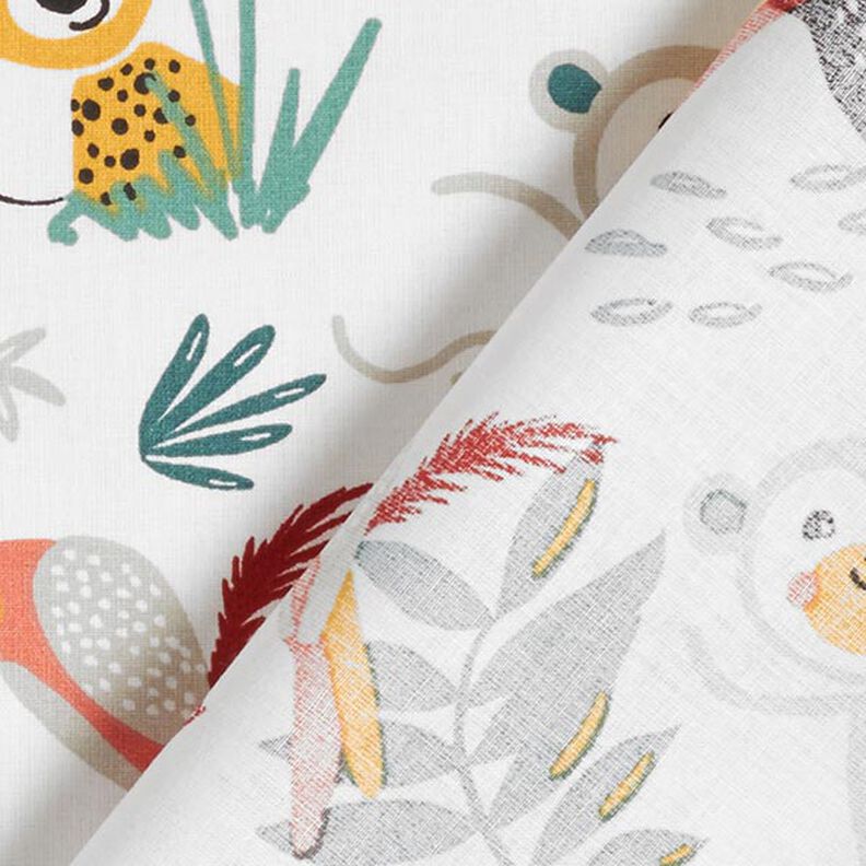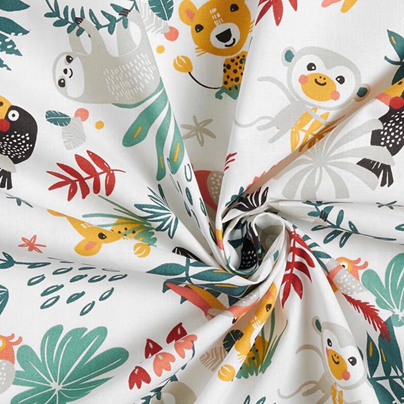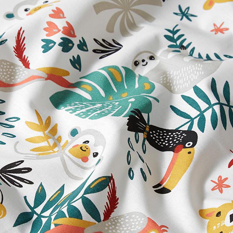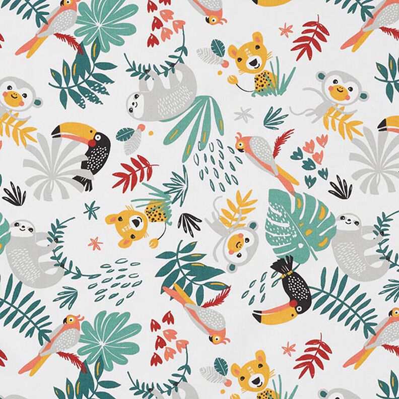 Bomuldsstof Cretonne Jungle – hvid