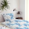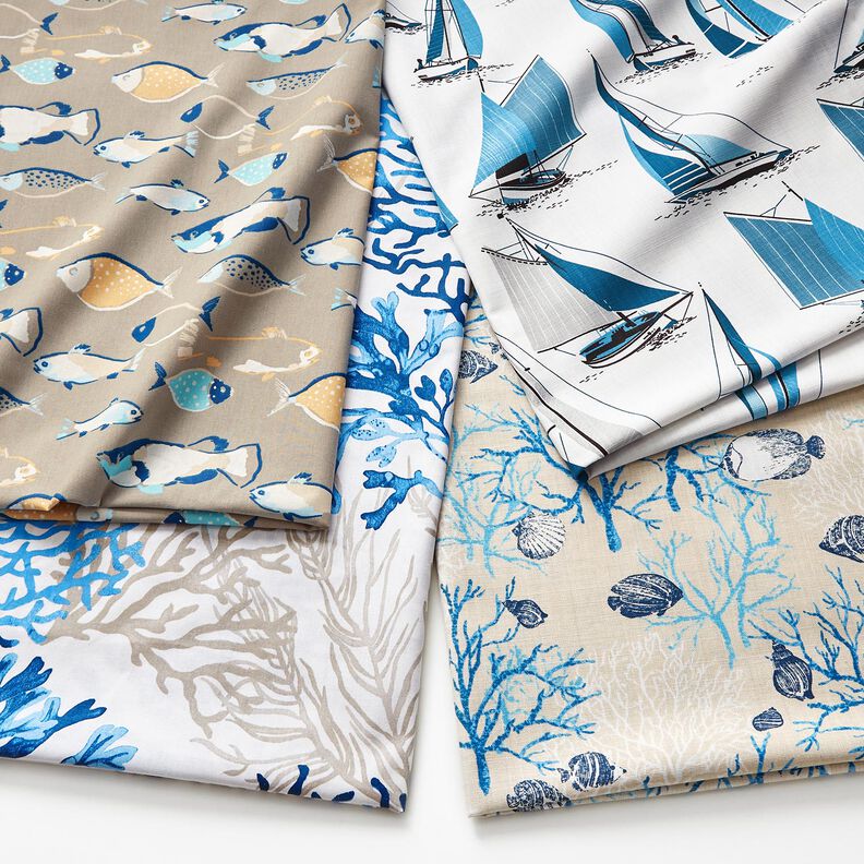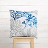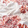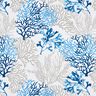 Bomuldsstof Cretonne store koraller – hvid/blå
