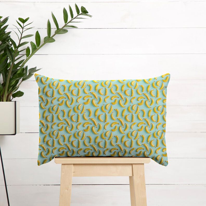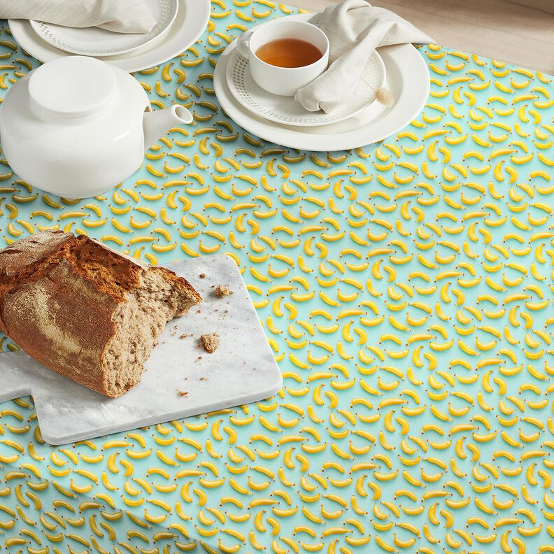 Bomuldsstof Poplin bananer – eukalyptus/solgul