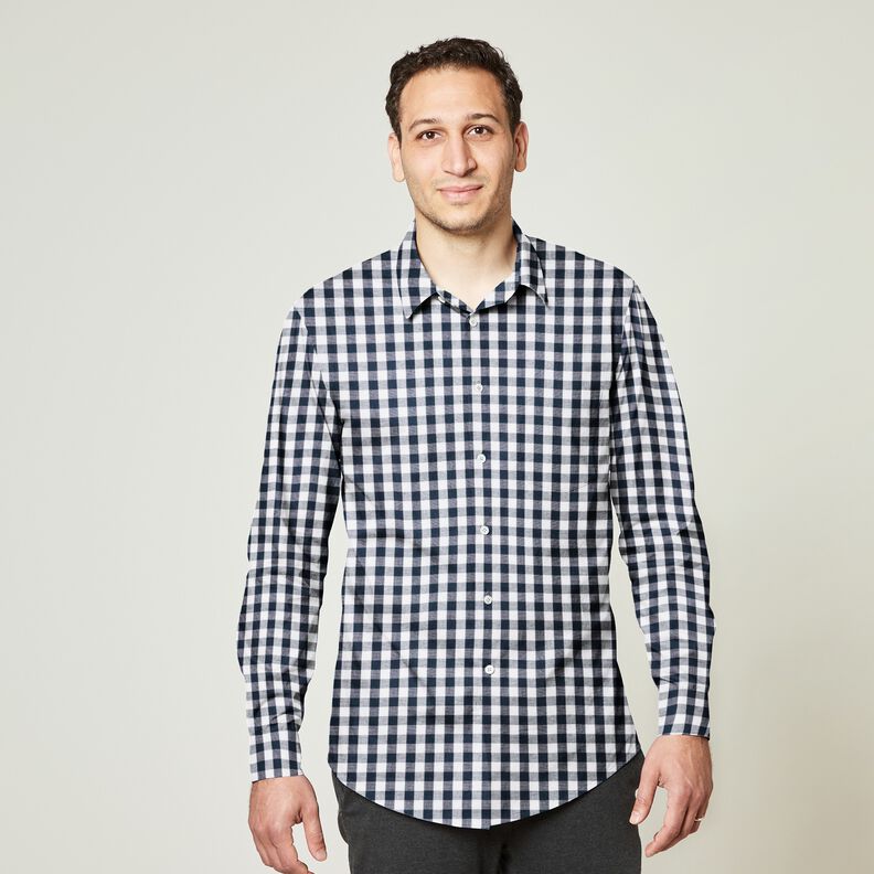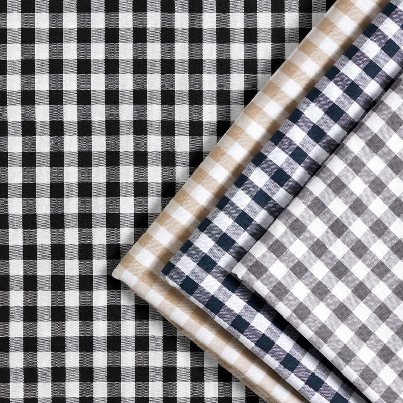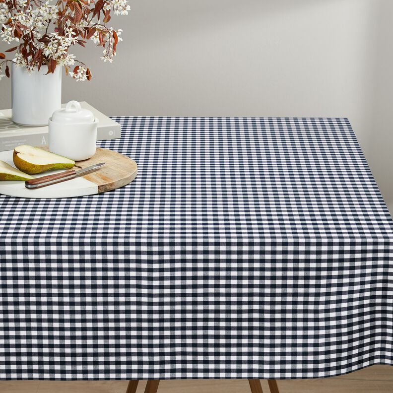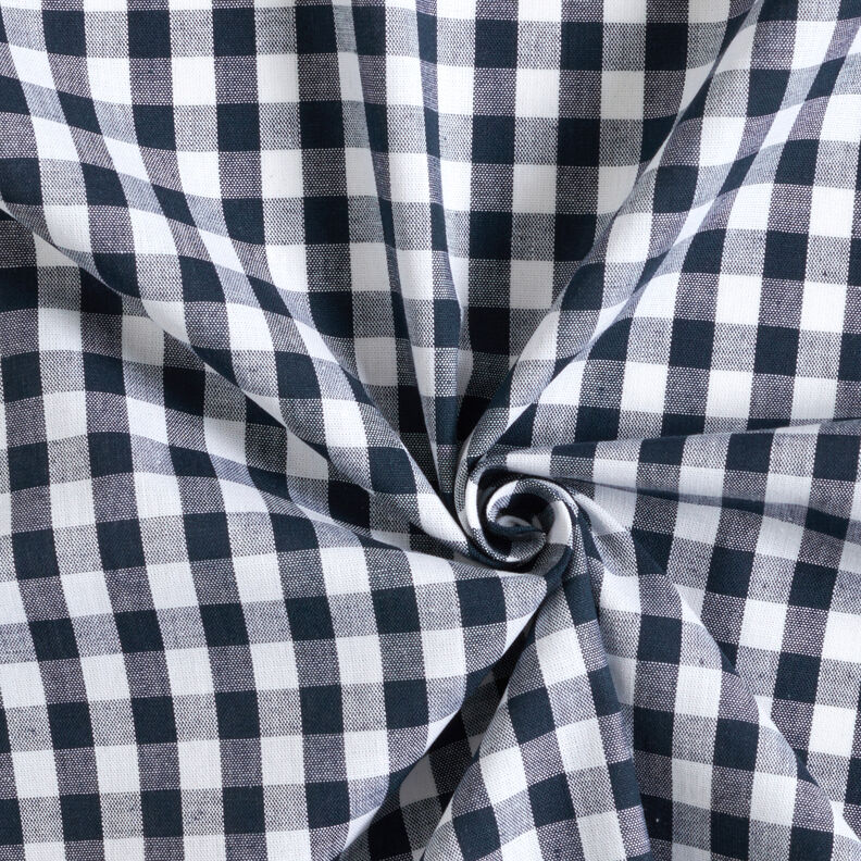 Bomuldsstof Vichy tern 1 cm – sort-blå/hvid