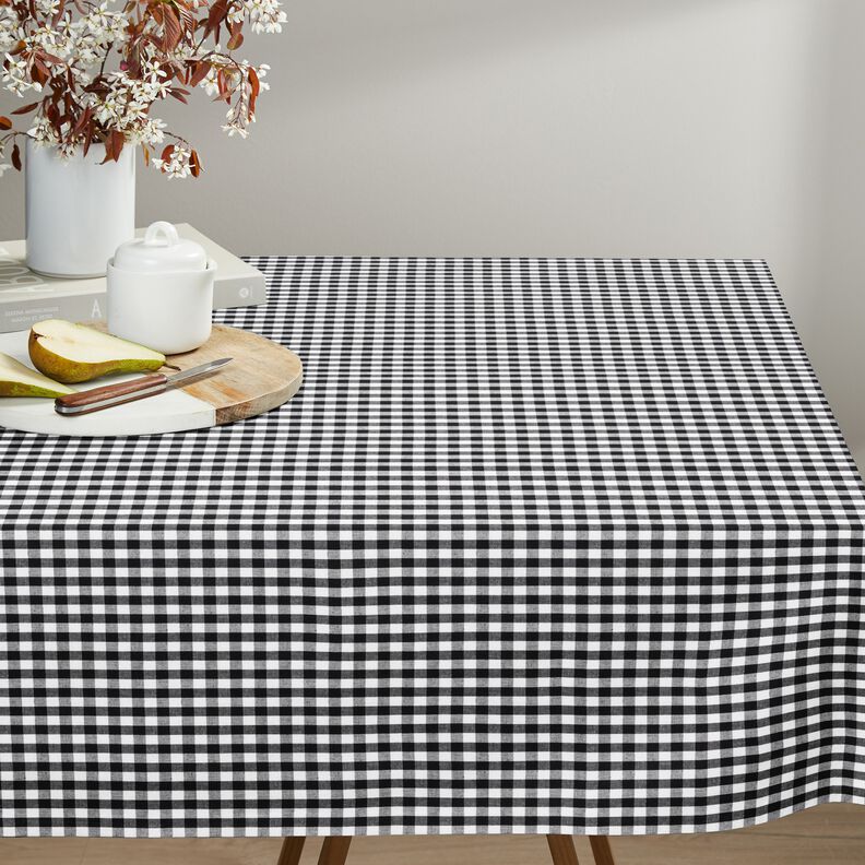 Bomuldsstof Vichy tern 1 cm – sort/hvid