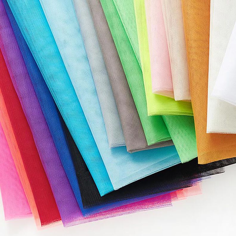 Blød, let fin tyl i sarte farver, der glimter svagt og egner sig ideelt til festlig karnevalsudklædning, luftige nederdele, eller brudeslør. Tyllet kan også anvendes til dekorationsformål.