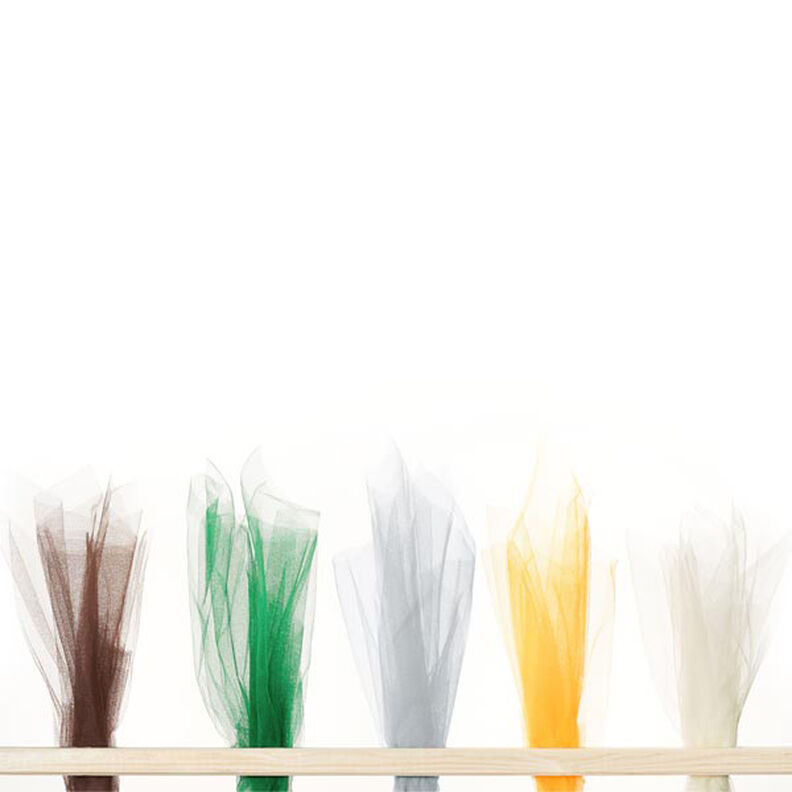 Blød, let fin tyl i sarte farver, der glimter svagt og egner sig ideelt til festlig karnevalsudklædning, luftige nederdele, eller brudeslør. Tyllet kan også anvendes til dekorationsformål.