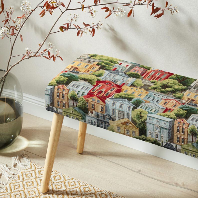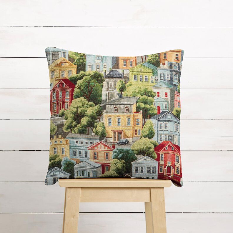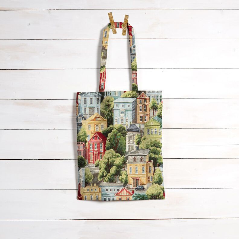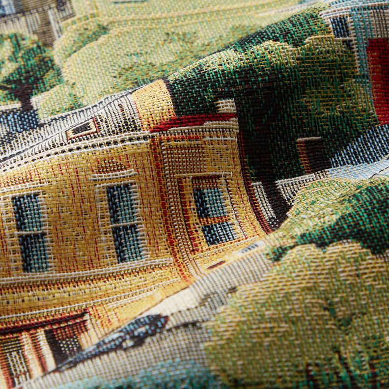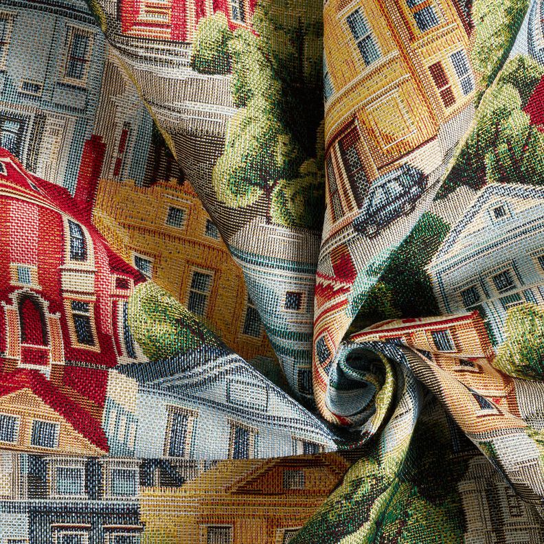 Dekorationsstof Gobelin farverigt kvarter – natur/himmelblå