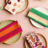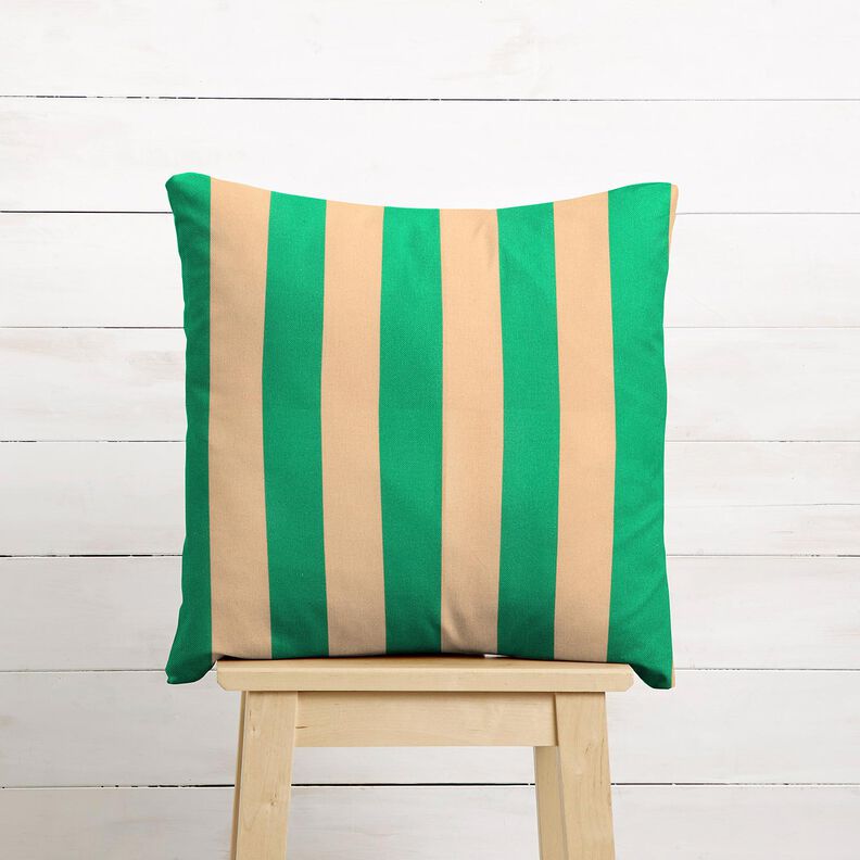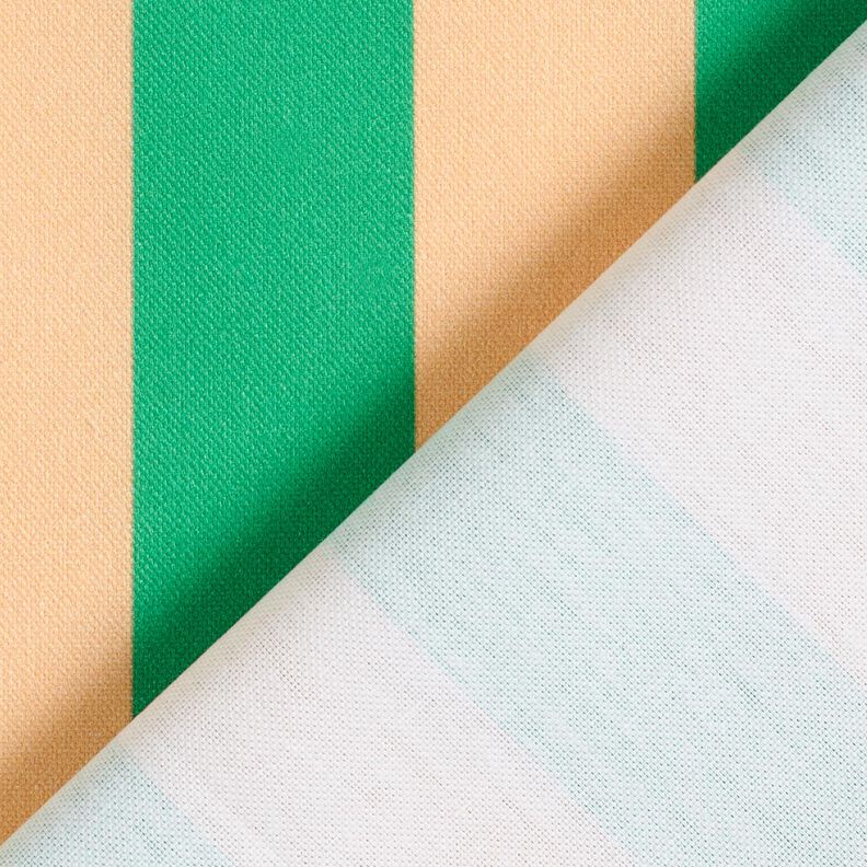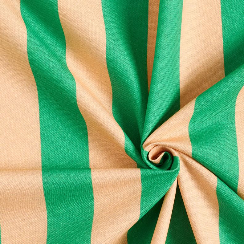 Dekorationsstof Halvpanama blokstriber – grøn/apricot