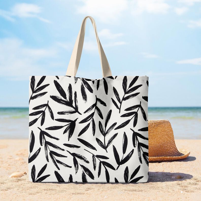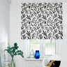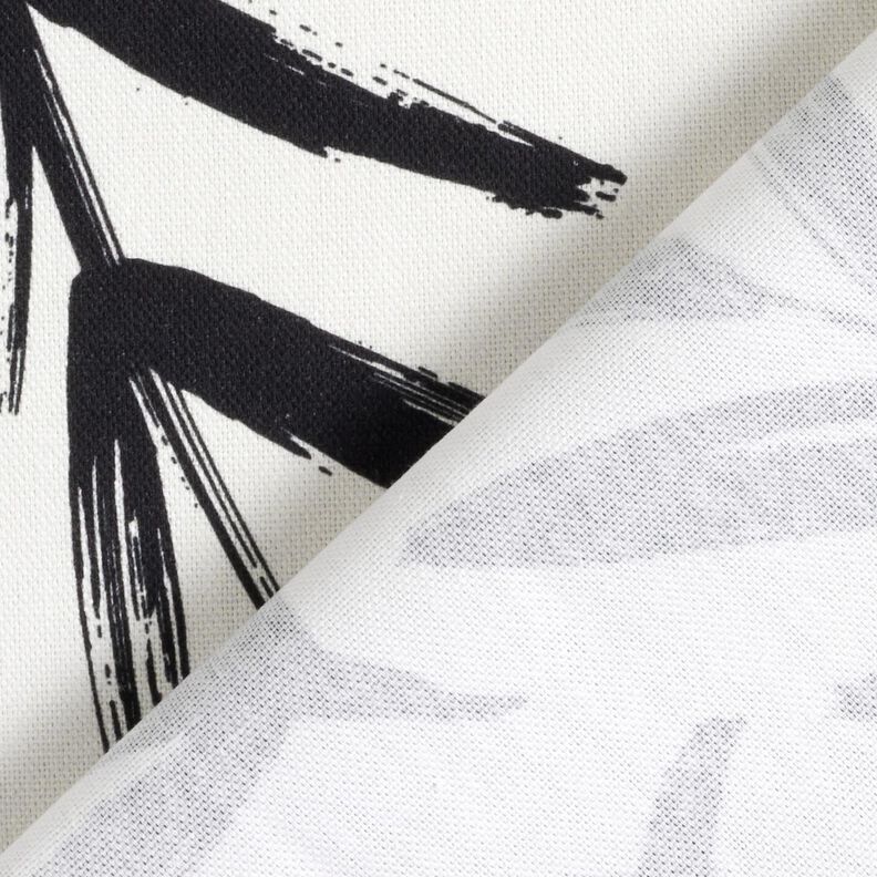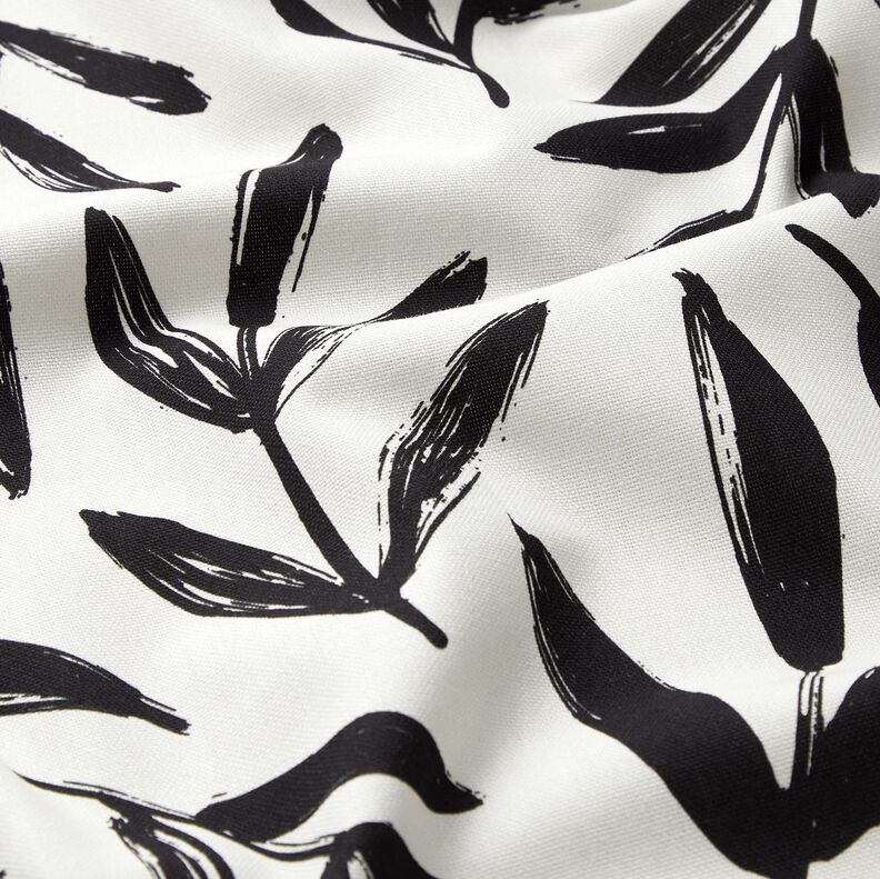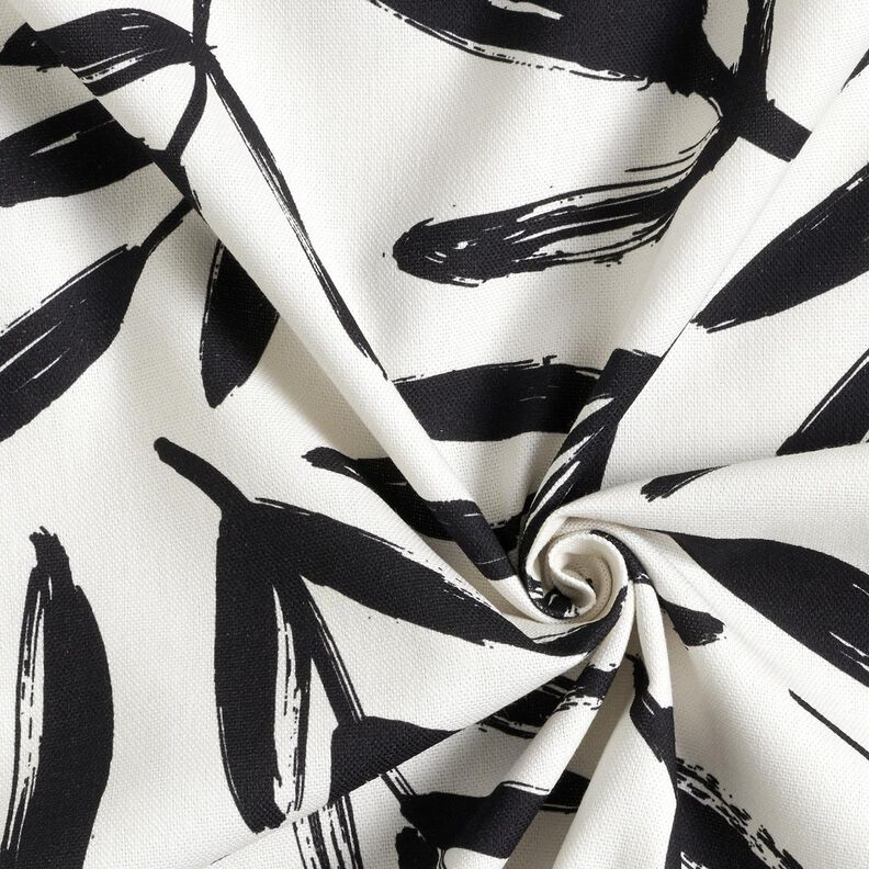 Dekorationsstof Halvpanama minimalistiske blade – sort/elfenben