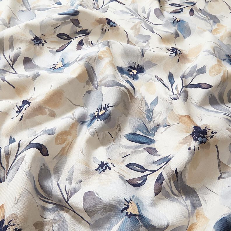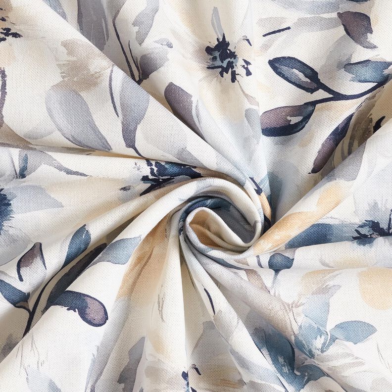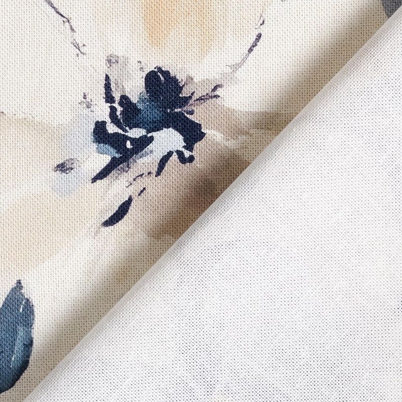 Dekorationsstof Halvpanama store blomster – mandel/blå