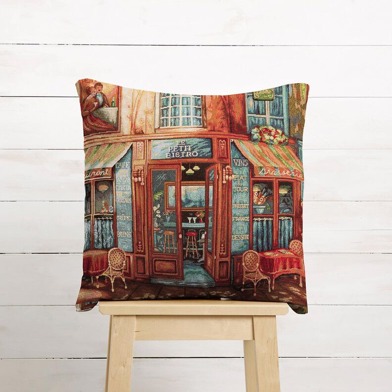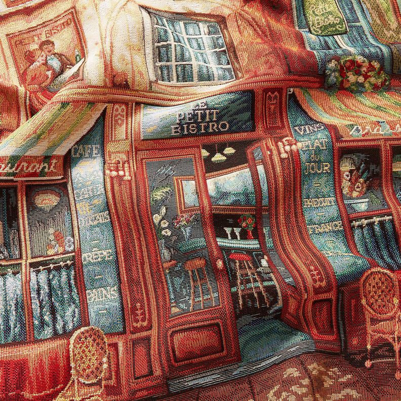 Dekorativt panelstof Gobelin fransk bistro – blå/terracotta