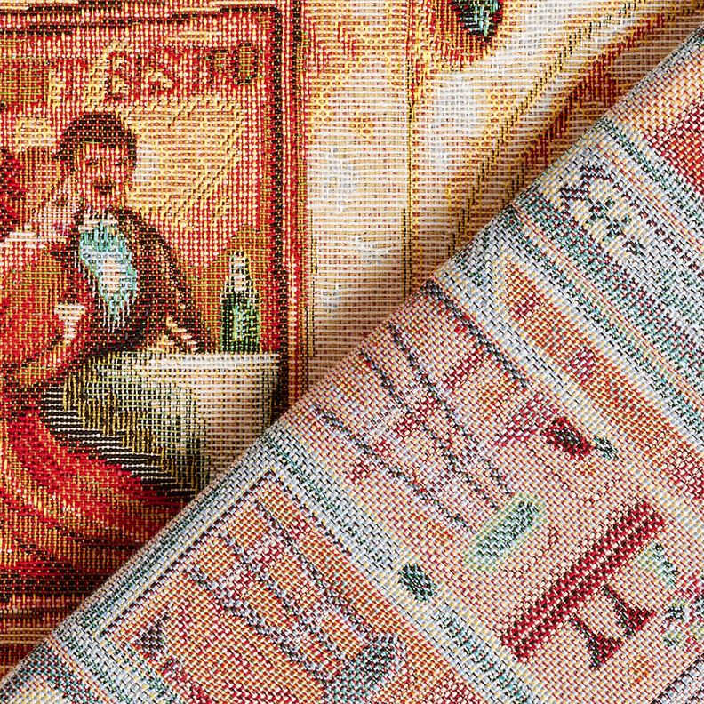 Dette pragtfulde Gobelinstof har et imponerende Jacquardmønster. På grund af den særlige vævning er stoffet særligt robust og holder formen, samtidig med at det falder lidt stift.