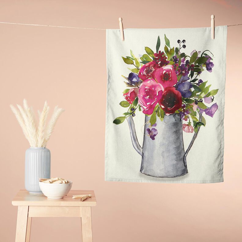 Dekorativt panelstof Trio akvarelblomster – elfenben/bær