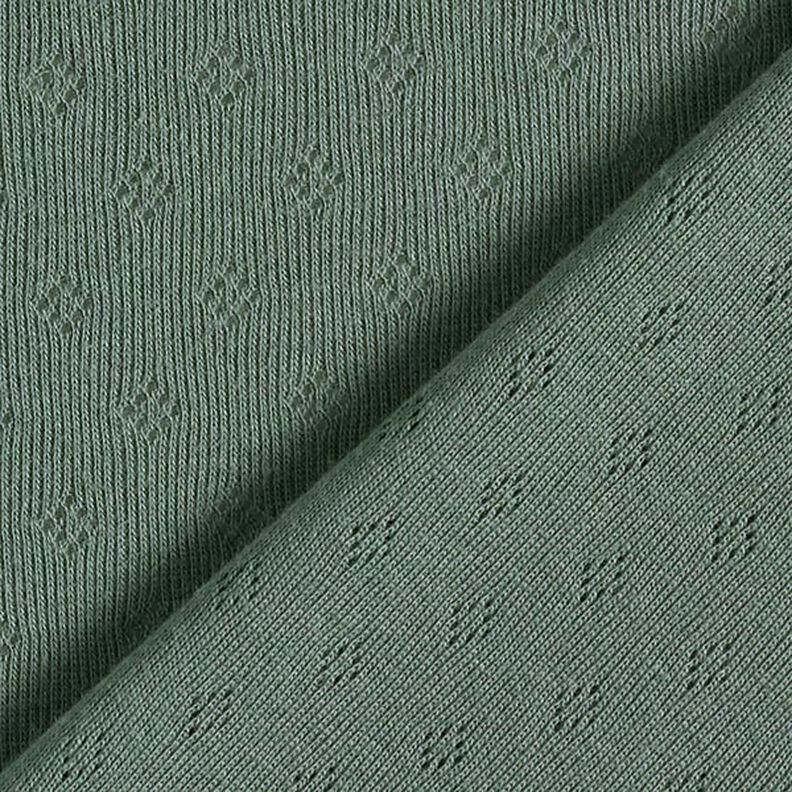 Meget blød, fint ribbet Bomuldsjerseystof med lille Ajourrombemønster, som egner sig godt til lette t-shirts og undertøj.
