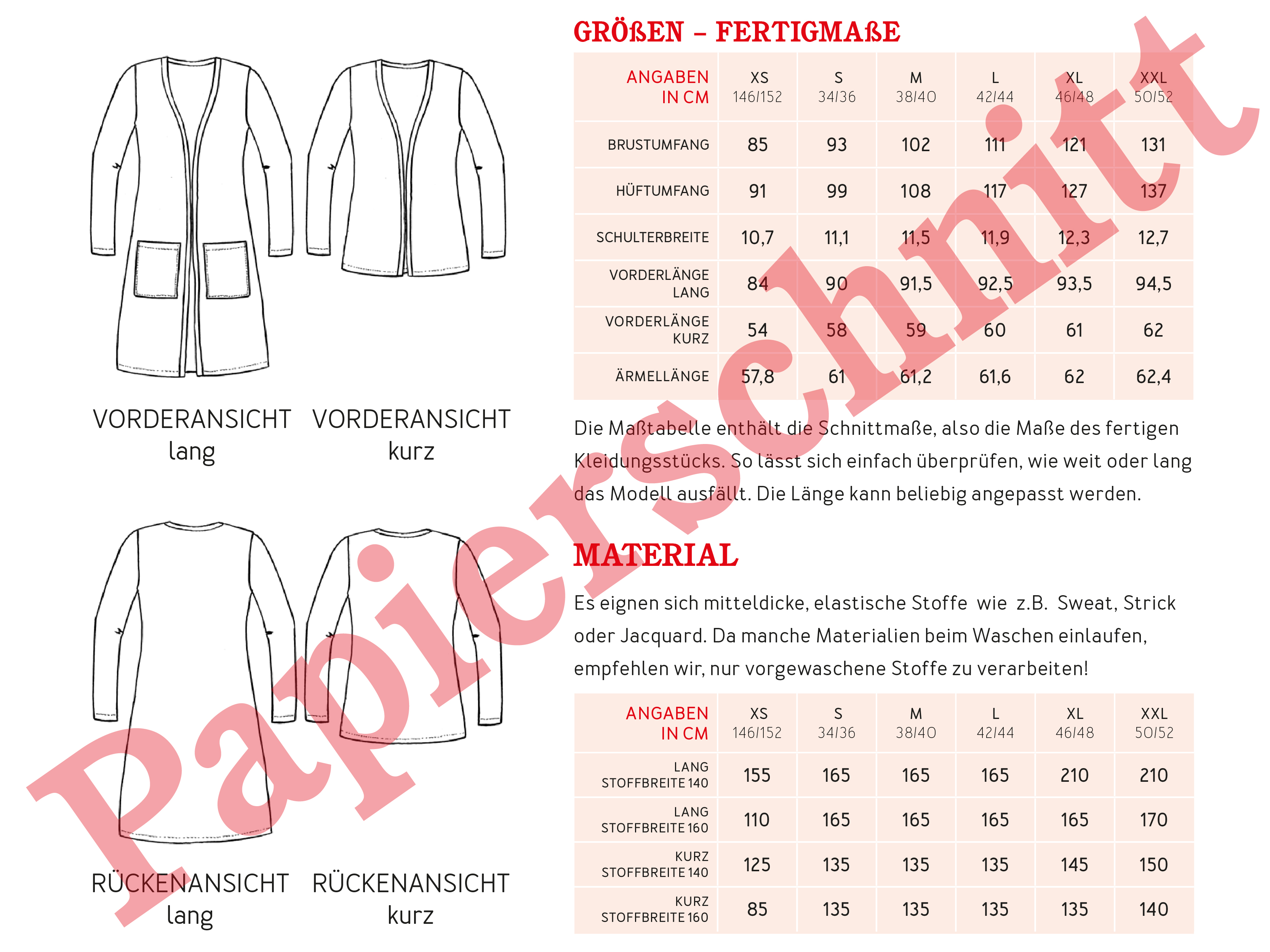 FRAU JACKY - cardigan med påsatte lommer, Studio Schnittreif | XS - XXL