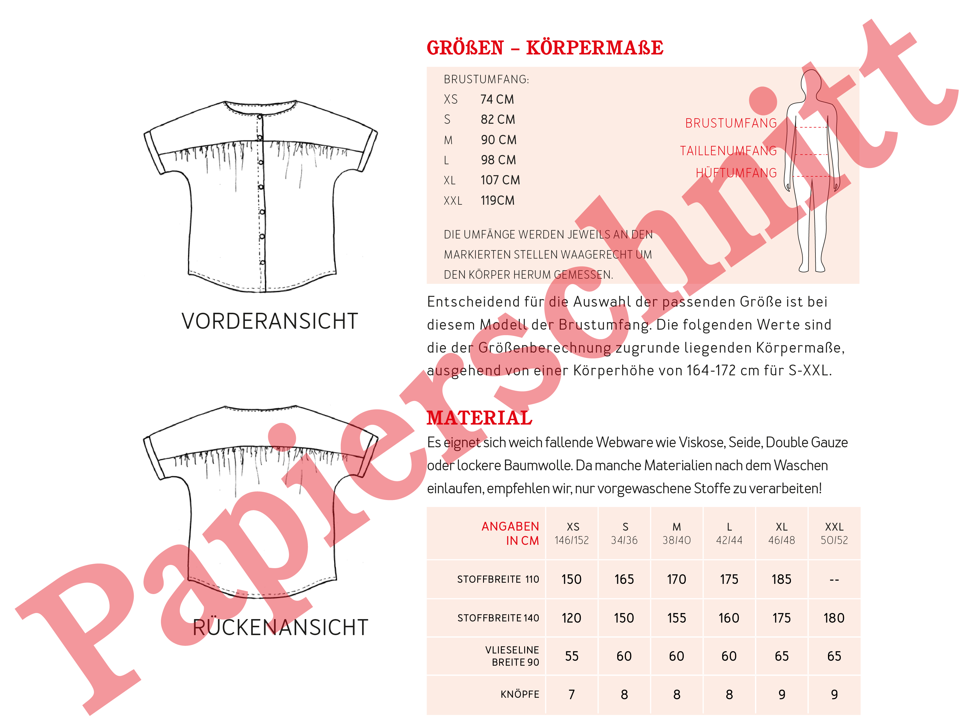 FRAU SUZY - løs kortærmet bluse med flæser, Studio Schnittreif | XS - XXL