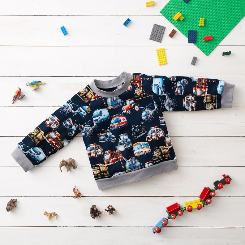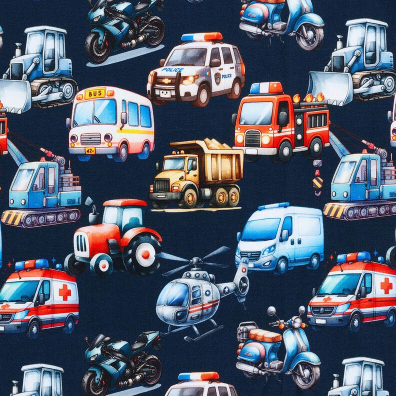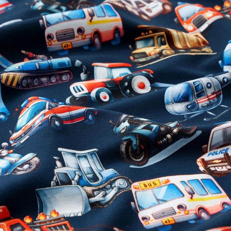 French Terry Sommersweat køretøjer Digitaltryk – marineblå