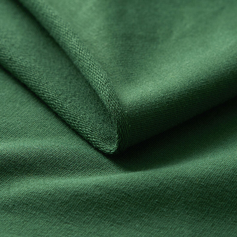 Denne eksklusive French Terry med typisk slynget look på bagsiden kan du bruge til mange ting. Stoffet er noget tungere end jersey og bliver derfor også kaldet sommersweat, da det er køligt, men samtidig dejligt blødt. Det egner sig særligt godt til seje sweatshirts, joggingbukser, løse kjoler og meget andet. Den smyger sig skønt til kroppen takket være elasticiteten.